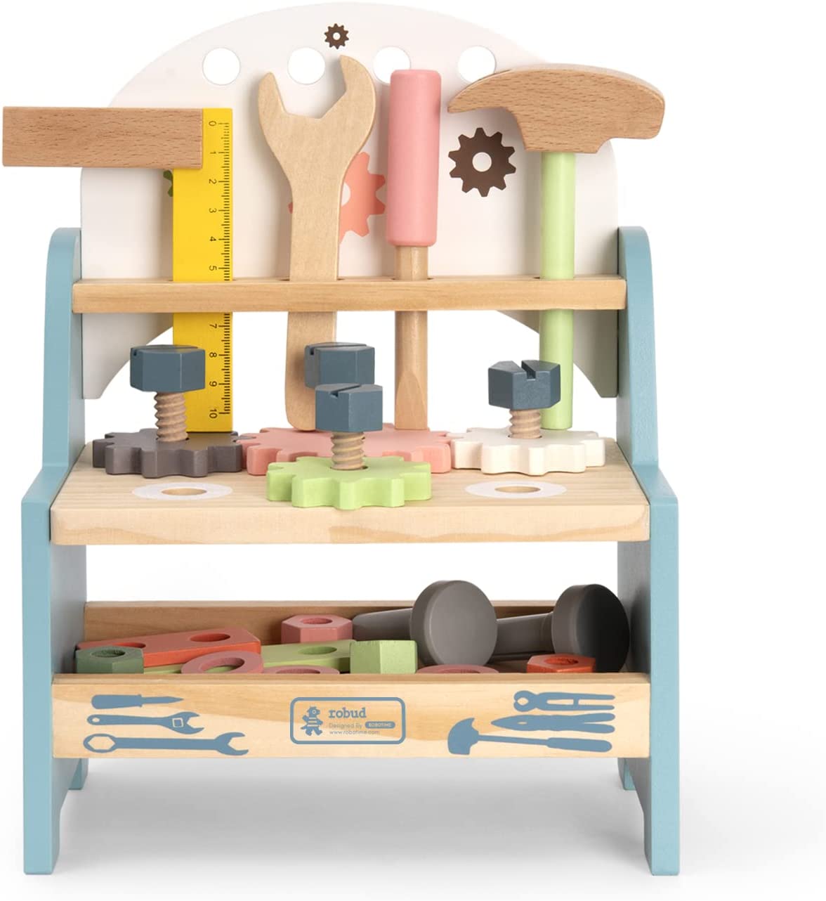 ROBUD Mini Wooden Play Tool Workbench Set for Kids Toddlers - Construction Toys Gift for 18 Months 2 3 4 5 Years Old Boys Girls
