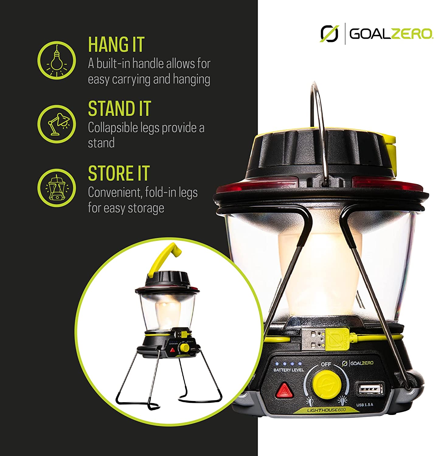 • POWER ALL YOUR DEVICES: With the USB output, you can use your Goal Zero rechargeable lantern to power other small devices, such as phones, headlamps, tablets, flashlights, and all your other camping gear, survival gear, and equipment. Never stop your journey because of a low-battery warning!
