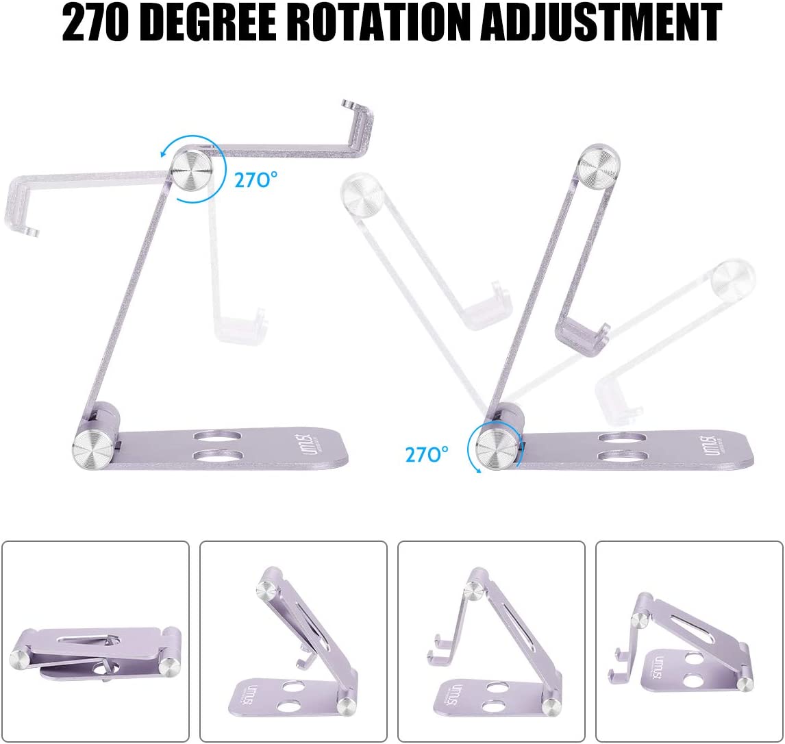 Urmust Cell Phone Stand for Desk Adjustable Foldable Phone Holder for Office Portable Desktop Dock Compatible with iPhone 14 13 12 11 Max Pro Xs Xr X 8 7 6, iPad Mini, Tablets 7-10" (Purple)