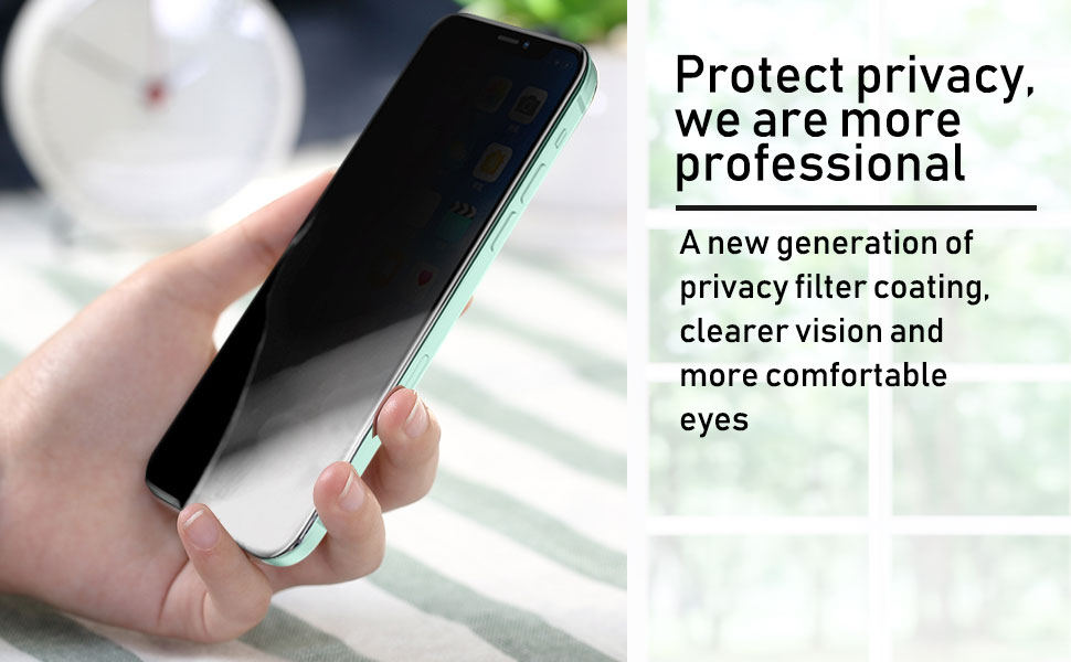 • The privacy screen protector and camera lens protector are designed for iPhone 12 6.1 inch, not fit iPhone 12 Mini 5.4"/iPhone 12 Pro 6.1"/iPhone 12 Pro Max 6.7", please check the phone model before buying. Even if you are an inexperienced user, it can be installed very easily. Before installation, please watch our online video installation guide to ensure the correct installation method. The product contains 2 * privacy screen protector and 2 * camera lens protector.