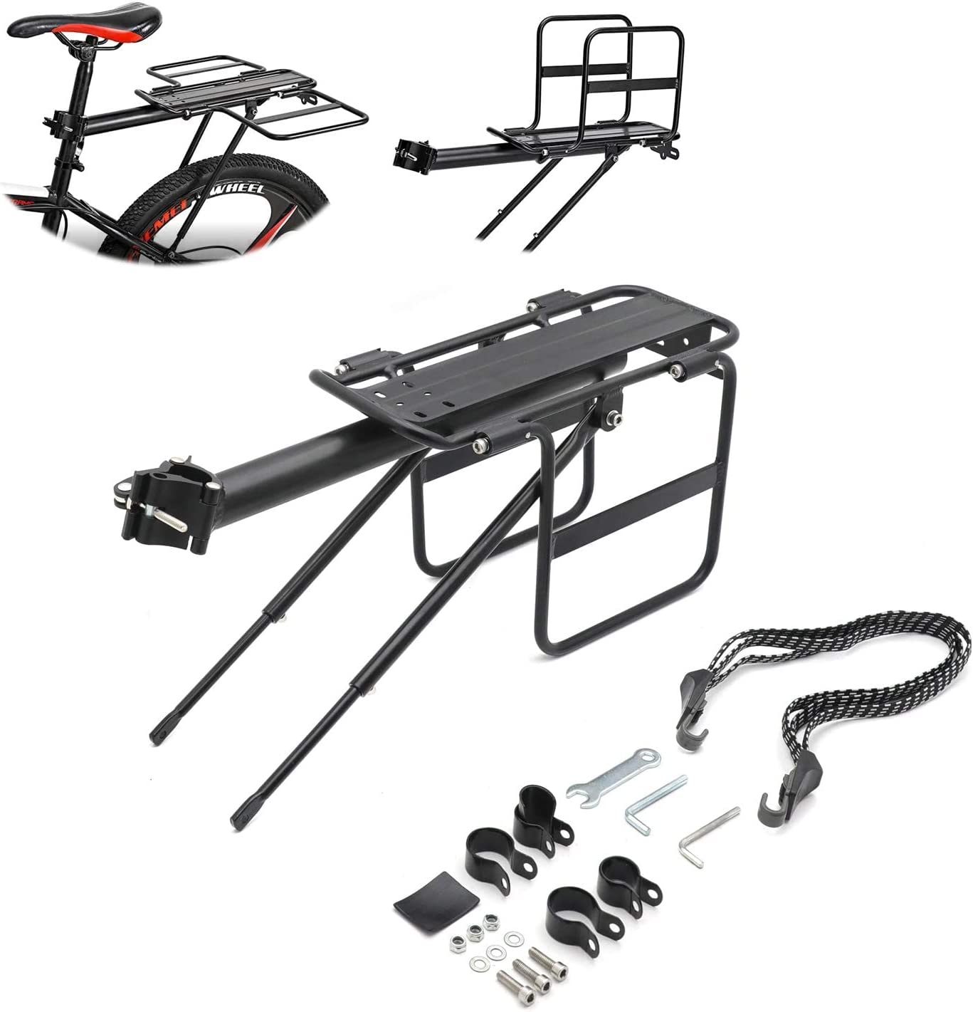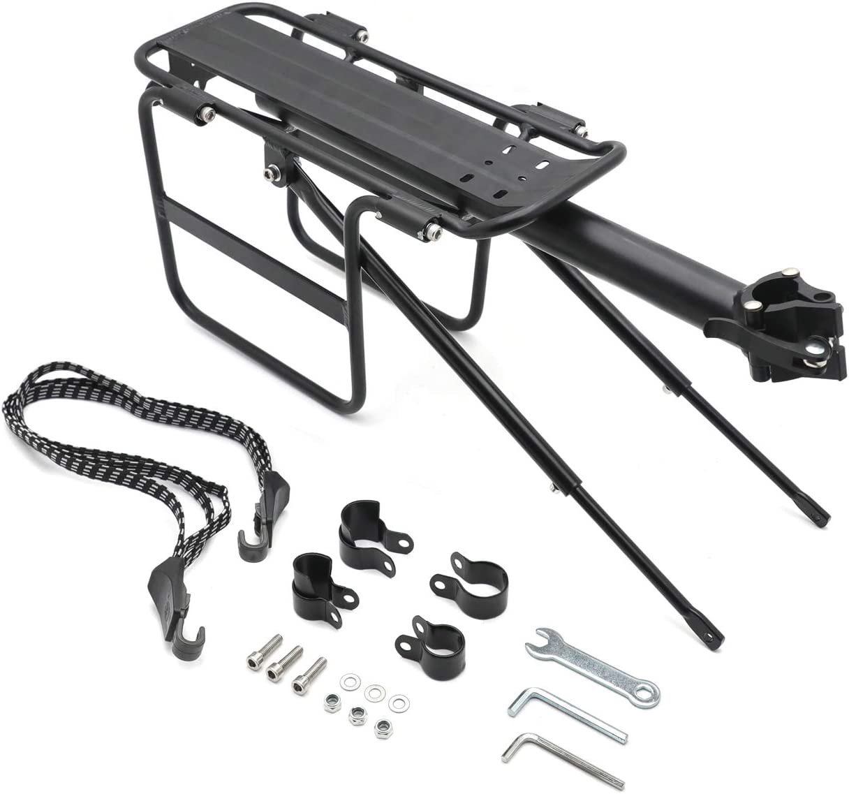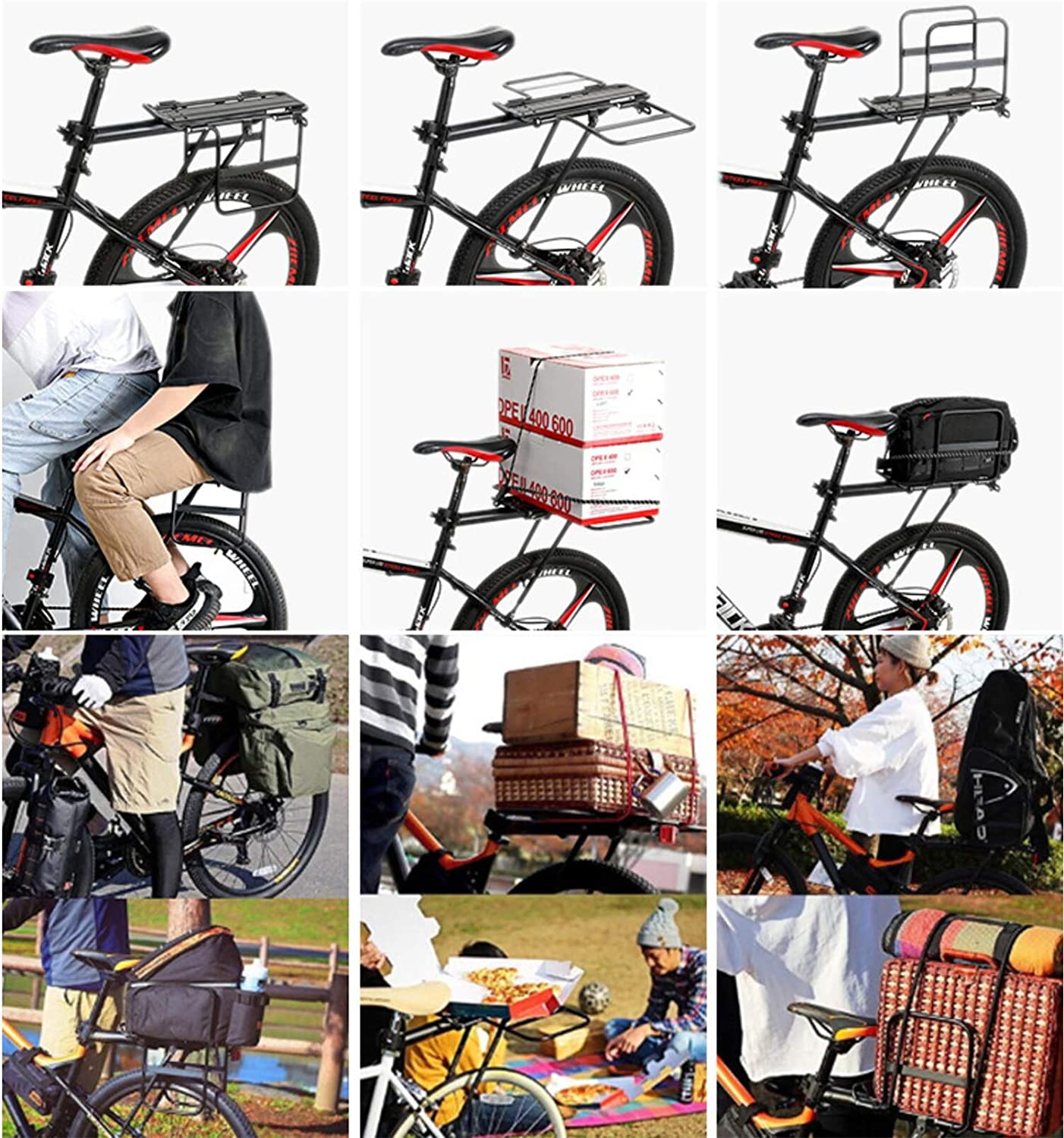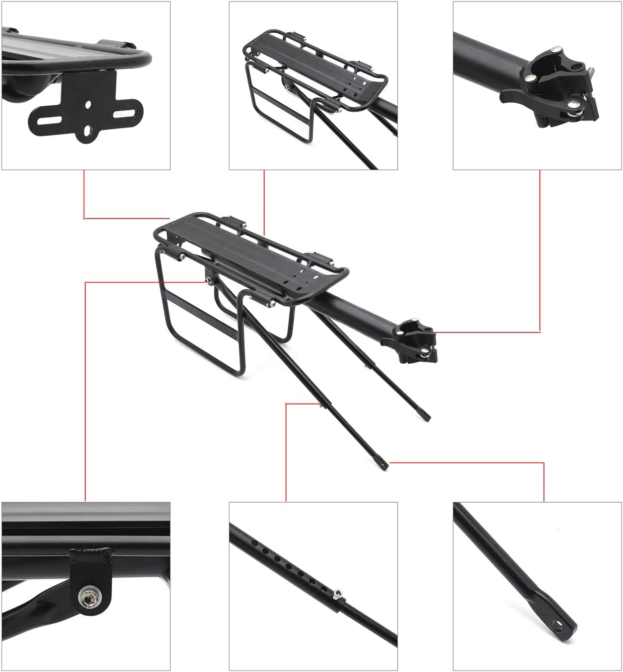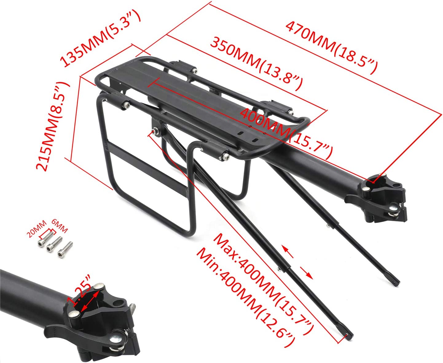 HTTMT- Bicycle Rear Rack Fender Luggage Rack Seat w/metal adjustable side wing [P/N: ET-BIKE-RACK004-BK ]