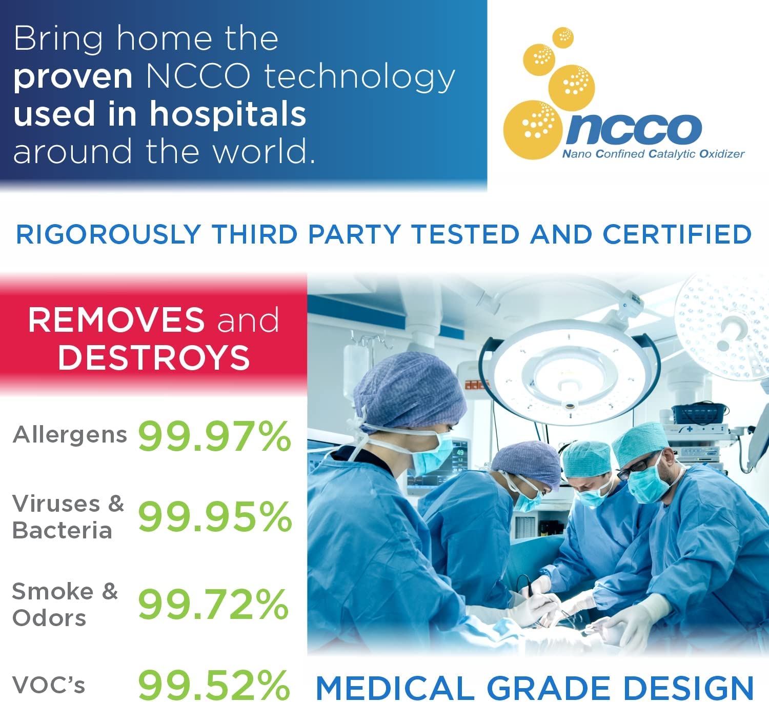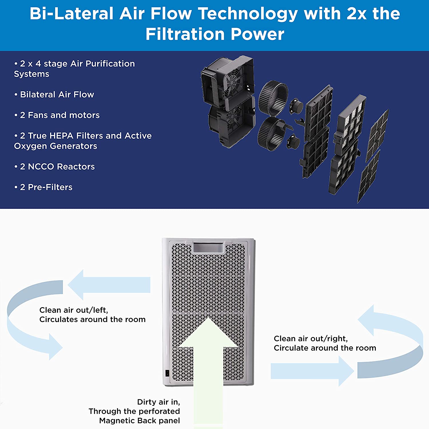 • BETTER THAN HEPA – Pre-filter, True H13 HEPA filter combined with patented NCCO technology (Nano Confined Catalytic Oxidation) sanitizes your house and kills and removes harmful pollutants. It breaks down the harmful particles in the air into harmless compounds and is more effective than a charcoal filter.