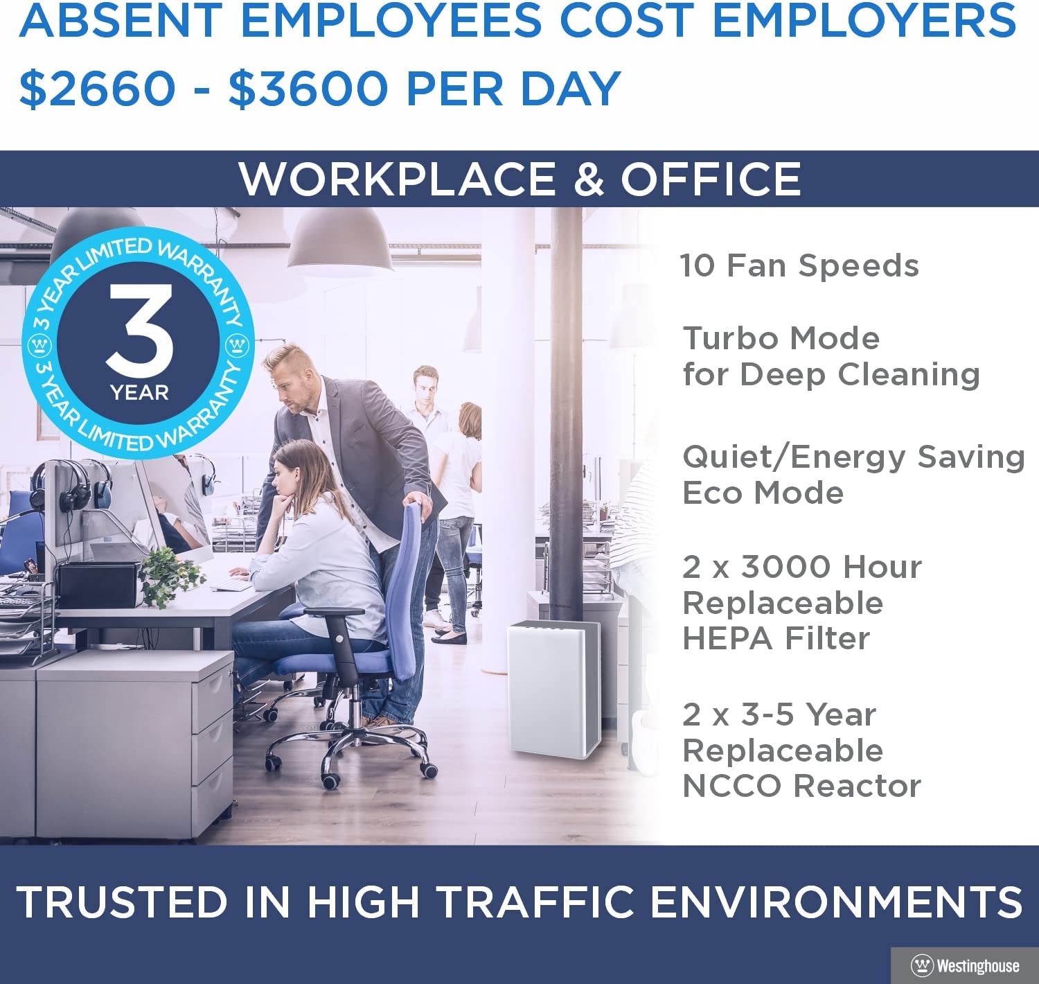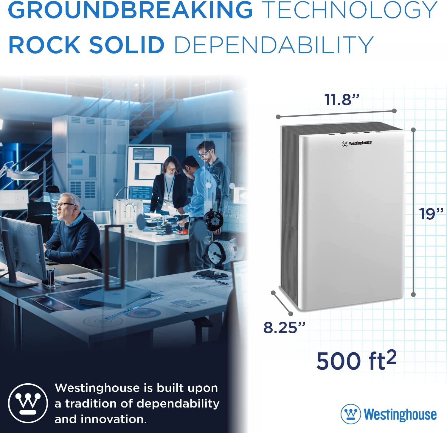 Westinghouse 1702 HEPA Air Purifier with Patented Medical Grade NCCO Technology for Home, Eliminates & Kills Bacteria and Viruses, Filters Dust, Pet Dander, Odor, Allergies, Smoke – Ideal for Large to
