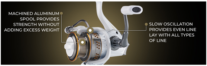 • LIGHTWEIGHT CONSTRUCTION: Features Everlast bail system for improved durability and strength. Durable graphite body and rotor with a machined aluminum spool that provides strength without excess weight. Right/Left reel handle position.