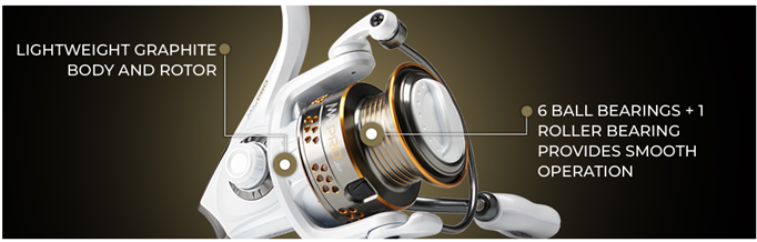 • 7 TOTAL BEARINGS: 6 ball bearings plus 1 instant anti-reverse bearing provides smooth operation for any fishing experience.