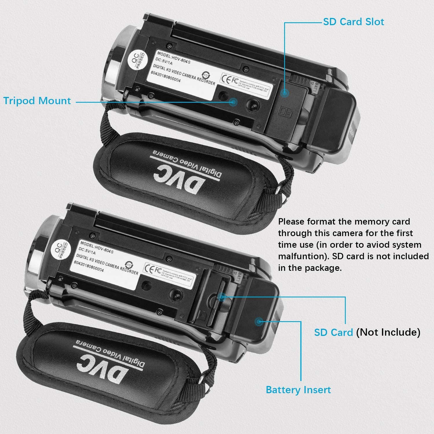 • 【Small and Compact Camcorder】: The camcorder supports SD/SDHC card up to 128GB (not included), just remember to format the SD card before use the camcorder first time. The camcorder support the tripod(not included) connection and the hole is standard size.