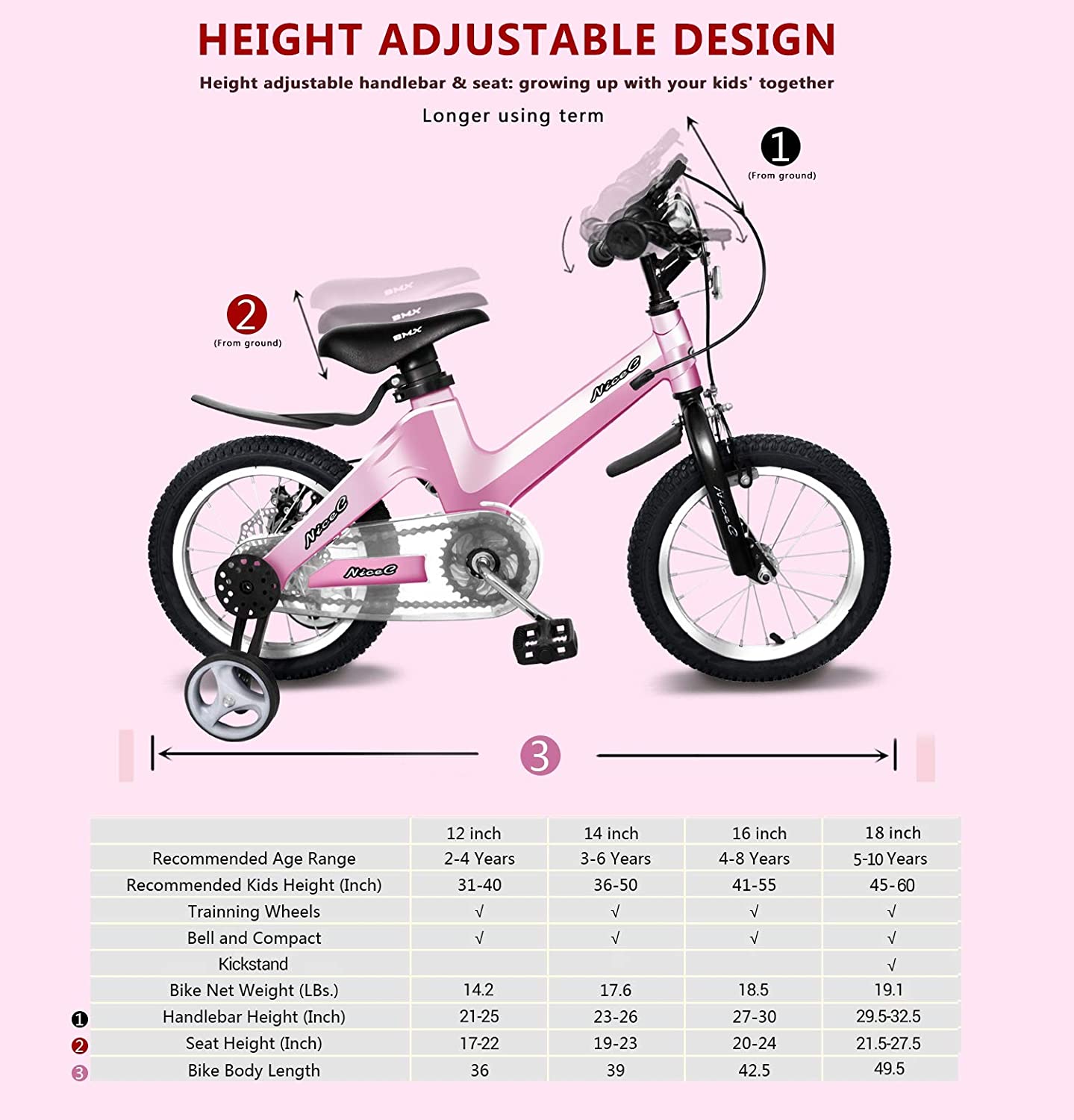 - ADJUSTABLE: Kids grow fast, so we have the perfect bike that will allow you to adjust both the handlebars and seat heights to fit your kids’ needs. For this 14 inch bike, the handlebars can be adjusted from 23-26 inches, and seat height can be adjusted from 19-23 inches. All bikes come with a page of fun stickers so they can customize their new bike.
