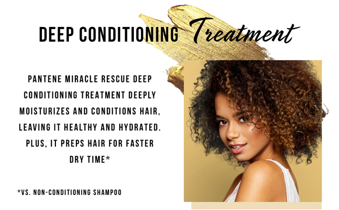 Update PRODUCT DESCRIPTION to: Upgrade your everyday hair routine with intense moisture with the Pantene Miracle Rescue Deep Conditioning Treatment for dry and damaged hair. This moisturizing hair mask formula provides weightless conditioning you can feel, and preps hair for faster dry time.* Its color-safe formula makes it safe for chemically treated hair. Plus, the deep conditioning formula leaves hair healthy and hydrated. Made with a protective antioxidant, histidine that goes deep into hair�s core to protect existing bonds to reduce free radical damage. This dry damaged hair treatment is scented with a blend of berries, fresh flowers, and creamy vanilla notes. To get your ultimate look, apply generously after shampooing to wet hair in the shower. Start at the tips and work through hair toward the root. Leave on for 1-3 minutes, then rinse thoroughly. We strive to bring you innovative formulas using proven ingredients, so every product we make helps you face the world with confidence. Transform the hair you have to the hair you want for more great hair days. * Vs. Non-conditioning shampoo