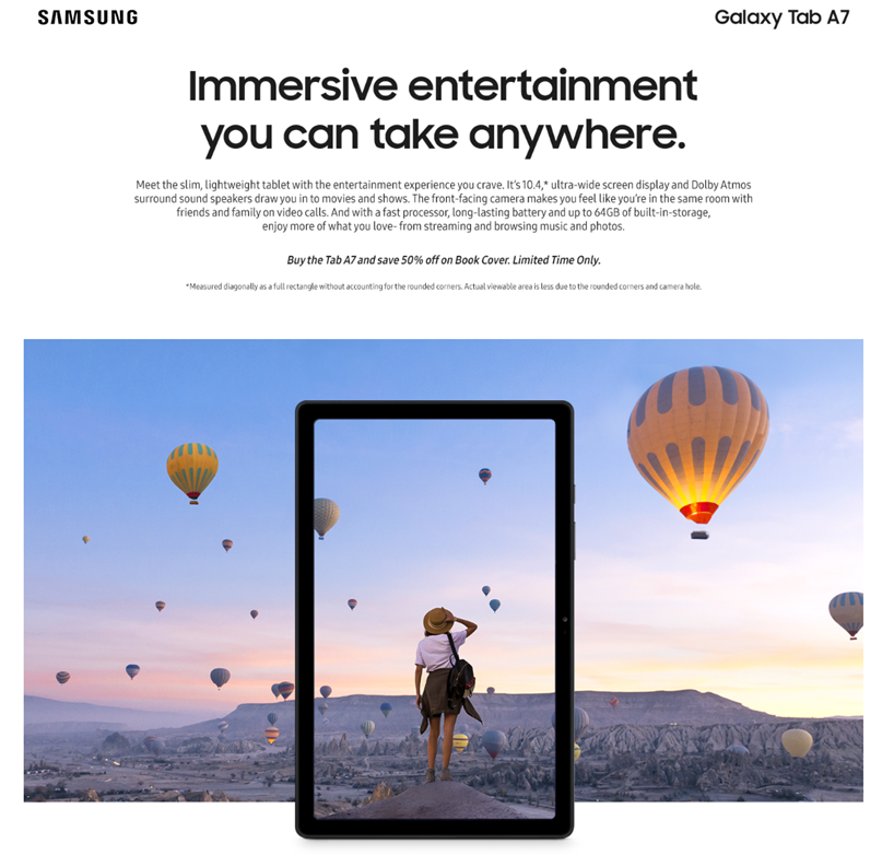 • PREMIUM ENTERTAINMENT, ON US: With purchase of Galaxy Tab A7, get two months of free YouTube Premium and six months of free Spotify Premium