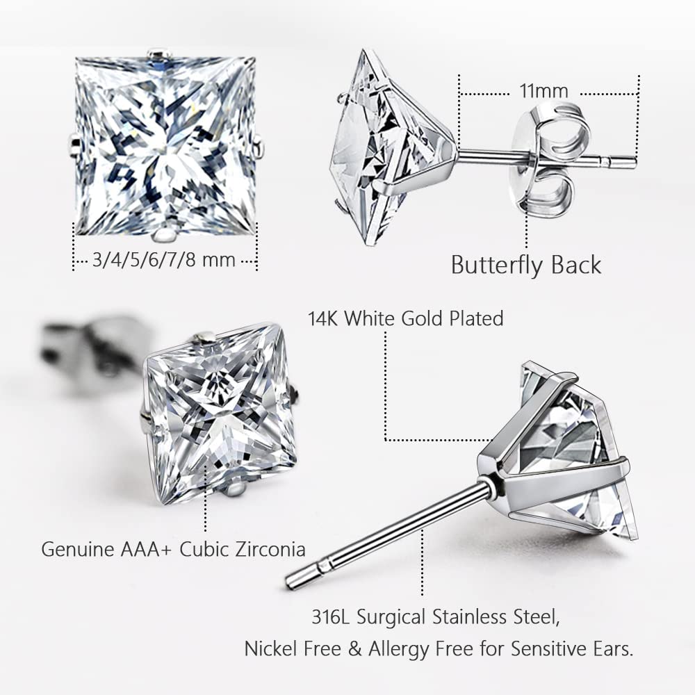 - Genuine AAA+ Cubic Zirconia which is flawless as man made with excellent cut, brilliant fire and high clarity. Classic stud earrings can enjoy them all day every day.