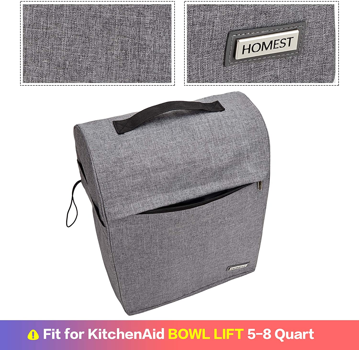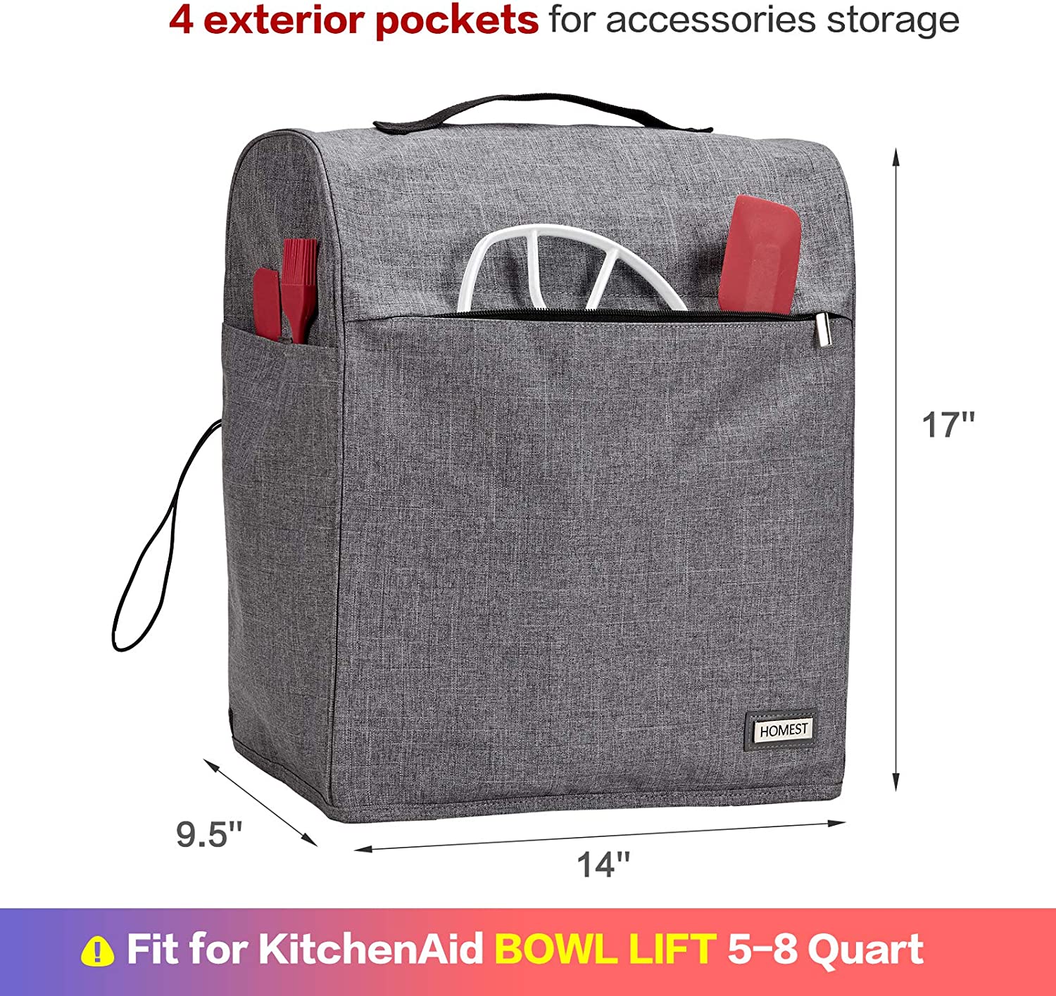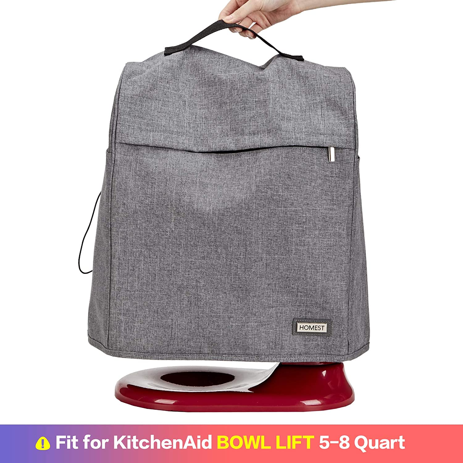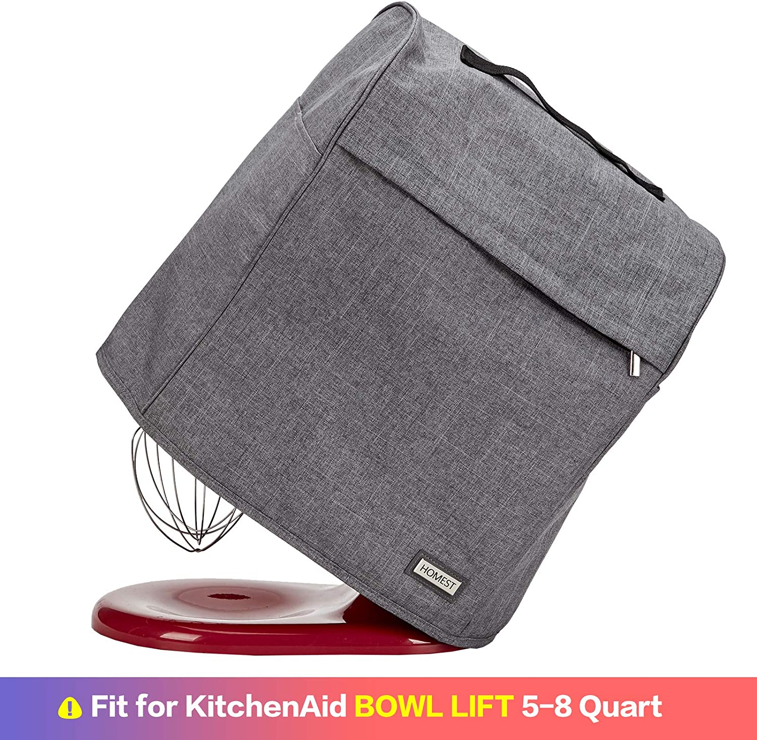 HOMEST Stand Mixer Cover Compatible with KitchenAid Bowl Lift 5-8 Quart,Dust Cover with Zipper Pocket for Accessories, Grey (Patent Design)