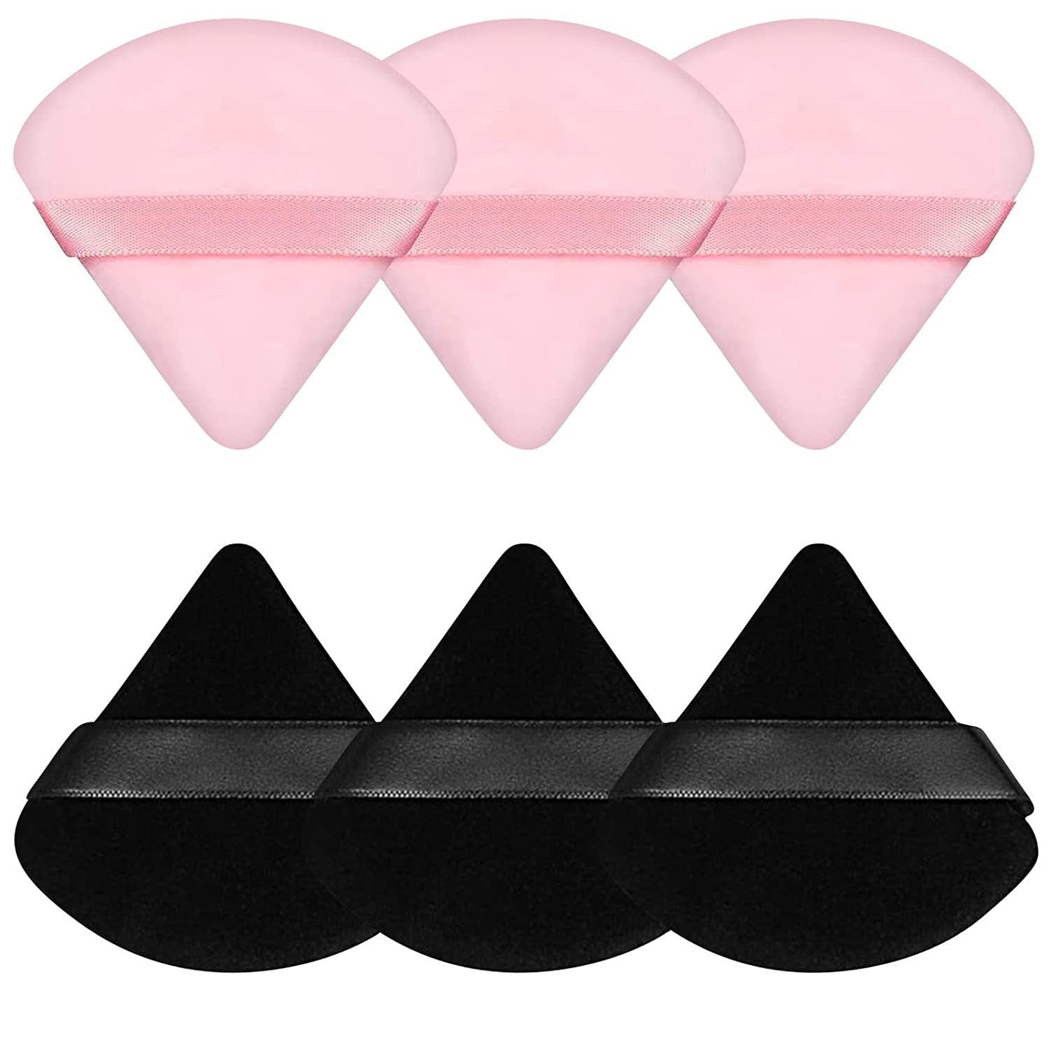 Pimoys 6 Pieces Powder Puff Face Soft Triangle Makeup Puff for Loose Powder Body Powder, Wedge Shape Velour Cosmetic Sponge for Contouring, Under Eyes and Corners, Beauty Makeup Tools