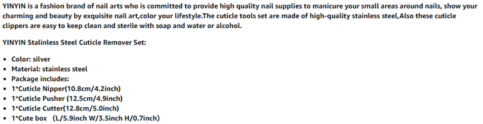 【Premium Polished Stainless Steel】Our newly upgraded nail cuticle trimmer with cuticle pusher and cutter are made of 100% high quality stainless steel,YINYIN professional 3 in 1 cuticle remover tool are premium metal cuticle set and retain sharpness for a very long period of time.