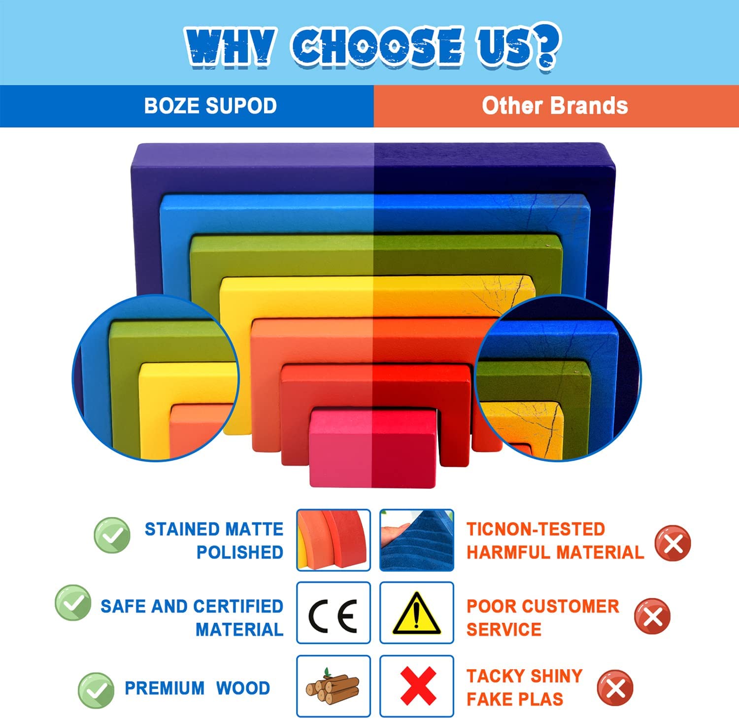 BOZE SUPOD Wooden Toys Rainbow Stacking Blocks-Montessori Toys Building Blocks for Toddler Age 1 2 3 4 Years Old Open Ended Preschool Activity Educational Toy Gifts for Kids-19PCS