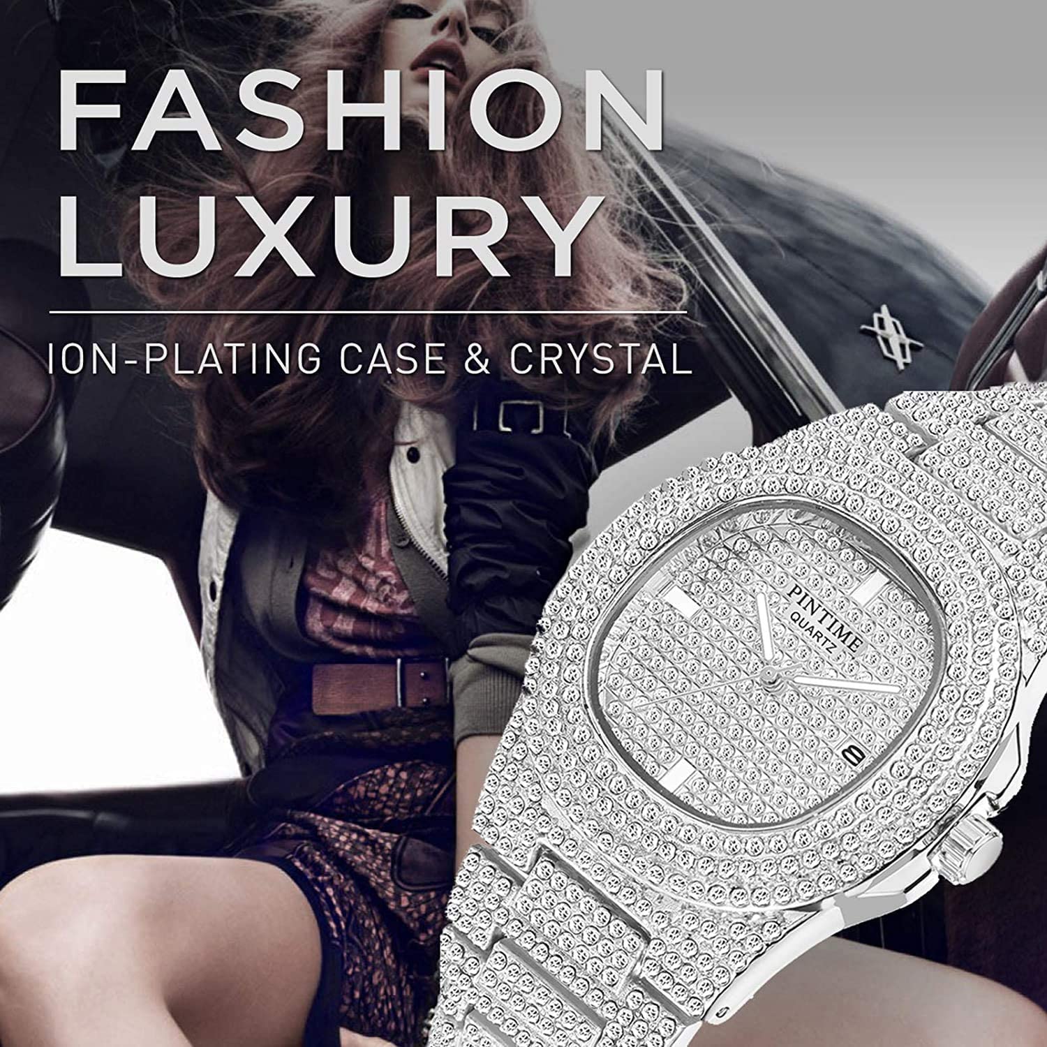 Luxury Unisex Watch Crystal Diamond Watches Big Face Women's Men's Quartz Watch Gold Color Silver Color Rose Gold Color Stainless Steel Wrist Watch