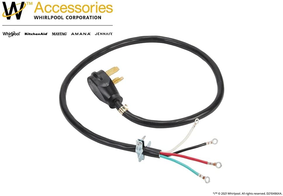 Whirlpool PT400L Genuine OEM 4-Prong 30-Amp Power Cord For Electric Dryers 4 Feet Black replaces W10834027, 4396060R, 4396060