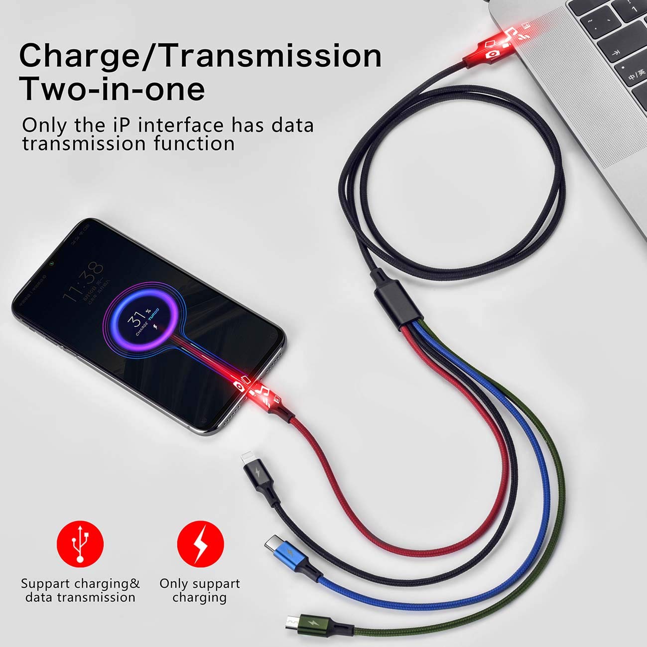 - 【Multi-Function】: 4 in 1 4A Nylon braided High Speed multi charging cord compatible with Phone 14 13 12 11 Pro Max / 14 13 12 11 Pro / 13 12 Mini / 14 Plus / 14 / 13 / 12 / 11 / SE / Xs Max / Xs / Xr / X / 8 Plus / 8 / 7 Plus / 7 / 6s Plus / 6s / 6 Plus / 6 / 5 / 5s , Pad Air / Pro, Pod / replacement Nano 7 / Samsung Galaxy S22+ / S22 / S21+ / S21 / S20+ / S20 / 210+ / S10 / S9+ / S9 / S8+ / S8 / Note 7 8 9 10 20, Huawei, HTC, LG, Sony, Google Pixel , Moto, PS 4/5 and other Android devices for most mobile phone charging.