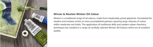 - Uniform consistency - The Winton range has a more uniform consistency than Artists' Oil Color and is a slightly stiffer paint. It offers excellent retention of brush and palette knife strokes.