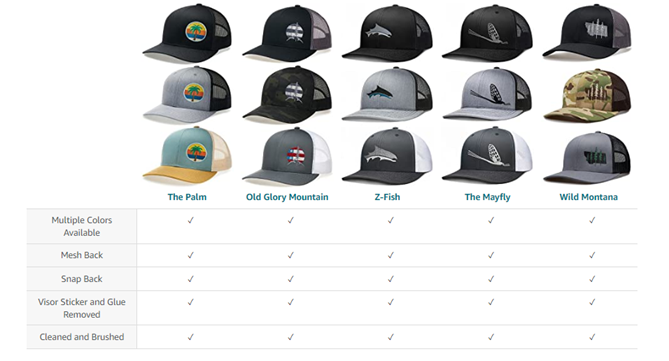 - CRISP CLEAN AND SOLID HATS : We have chosen Pacific Headwear 104 Richardson 112 and Yupoong 6606 models as our base trucker hats for the Larix designs. We believe these hats represent the best snapback mesh back adjustable retro trucker hats available anywhere. They are very similar to each other in quality fit shape and size. By using these models we can offer a better range of color options and in-stock availability.