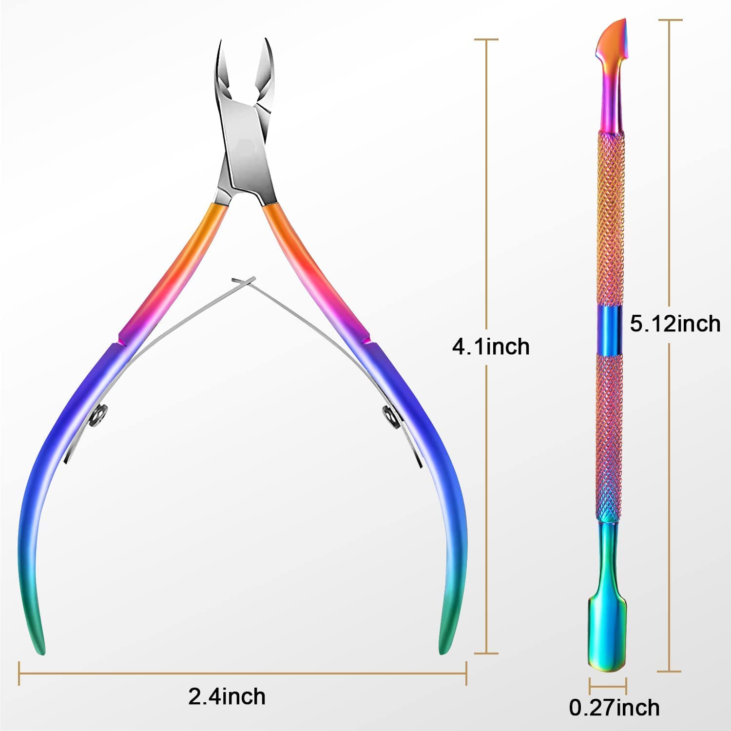 Easkep Cuticle Trimmer with Cuticle Pusher, Cuticle Remover Professional Stainless Steel Cuticle Cutter Nippers Rainbow Sharp Durable Pedicure Manicure Tools for Fingernails and Toenails