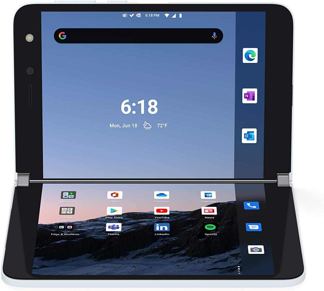 Two ultra-thin, high-resolution touchscreens open to reveal new possibilities on a mobile device. Designed to help you be productive, Surface Duo features multiple modes, the best of Microsoft 365 mobile experiences, every Android app in the Google Play store, and new dual-screen enhanced apps. Now you can view two apps at once or span one across both screens, drag and drop between screens, and make phone calls. Say goodbye to constant app switching.