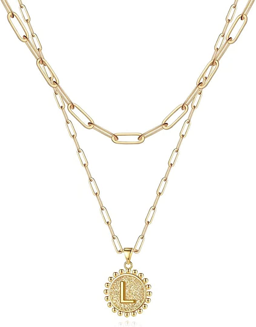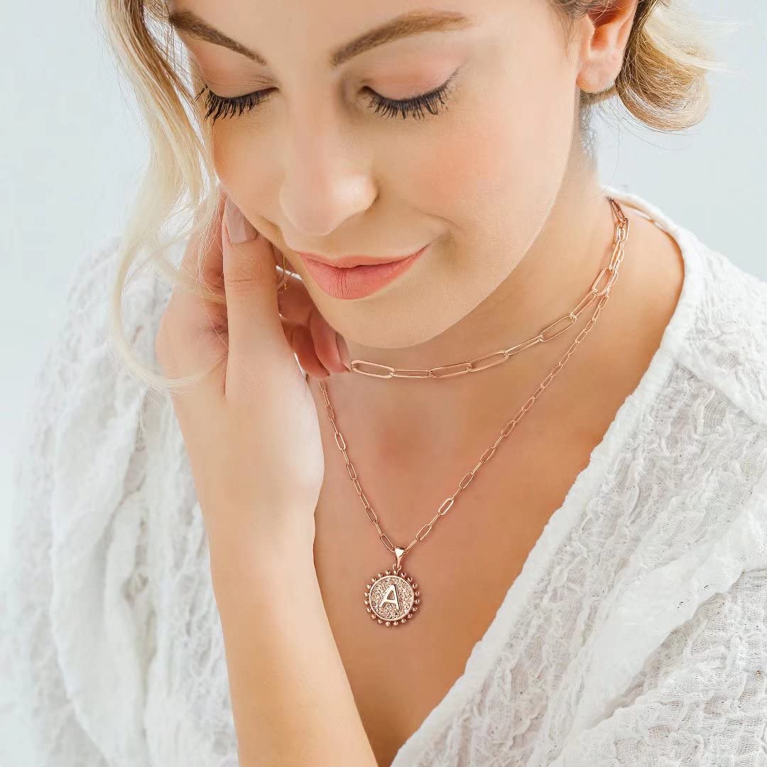 • LAYERED NECKLACE: 2Pcs Layered necklace, paperclip chain choker necklace, initial coin pendant necklaces. Fashion originates from classics, minimalism design, great for wearing alone or layering with other dainty necklaces.