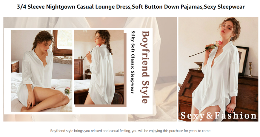 ?BOYFRINED STYLE SLEEPSHIRT:Sexy Pajama top features in 3/4 Sleeve,notched collar,full button front,mid-thigh length,with good cut and irregular high-low hem,make you sexy and charming for the sweet night,The boyfriend style shirt is loose fit,easy to suit for any figures