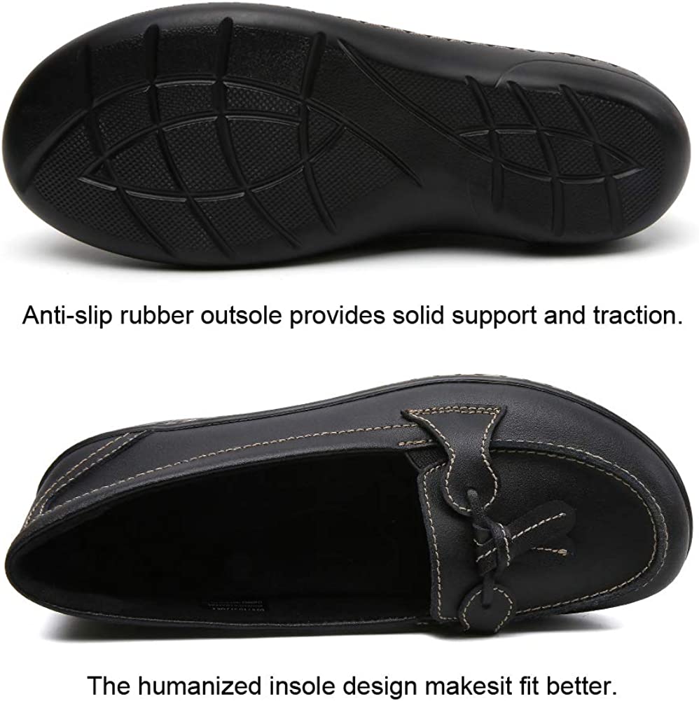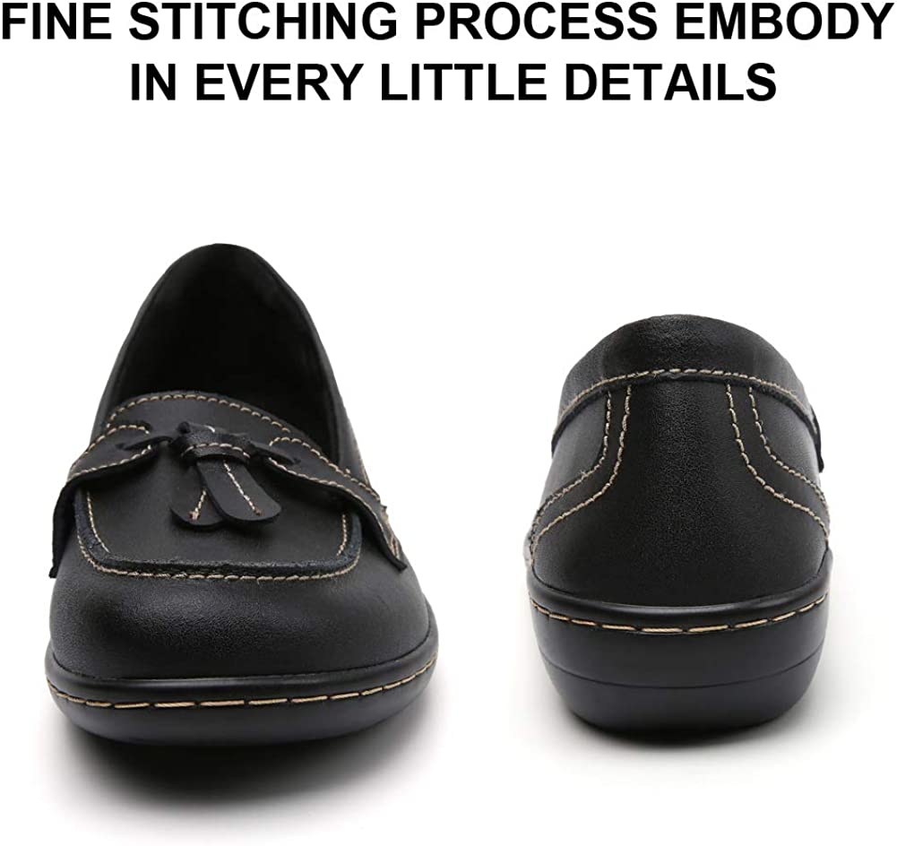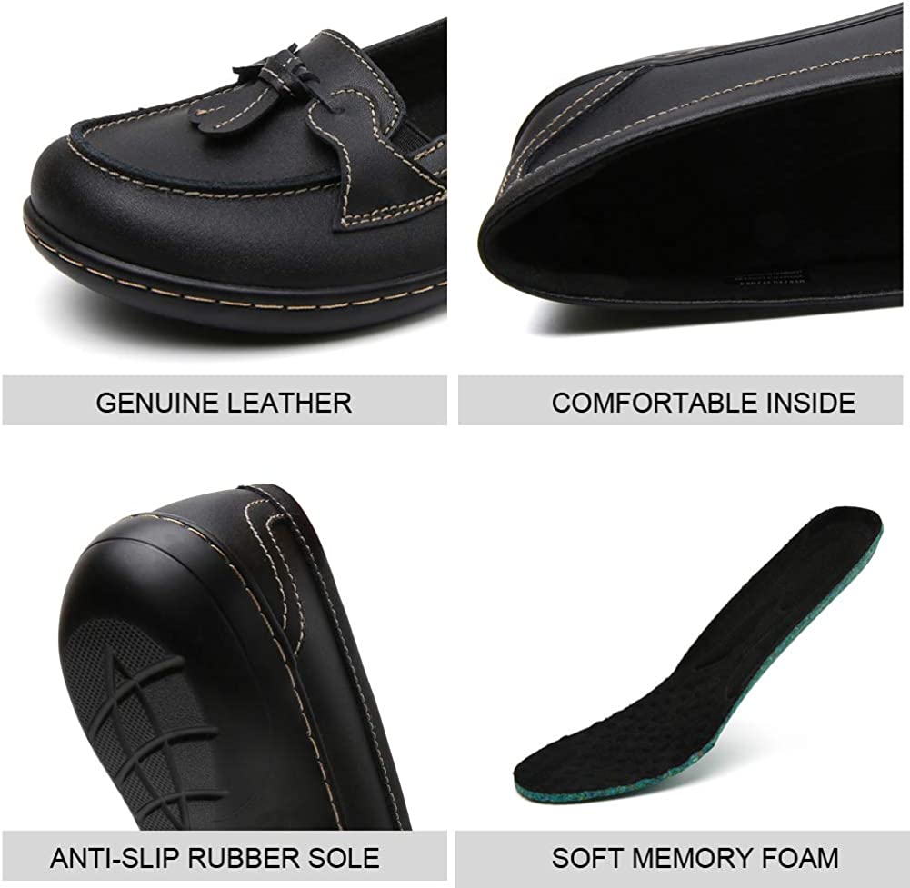 • [PREMIER MATERIALS]: Loafers for women comfortable are made of genuine luxury split leather upper with classic fine stitching. Cowskin leather lining and memory foam insole. Lightweight and flexible rubber sole.