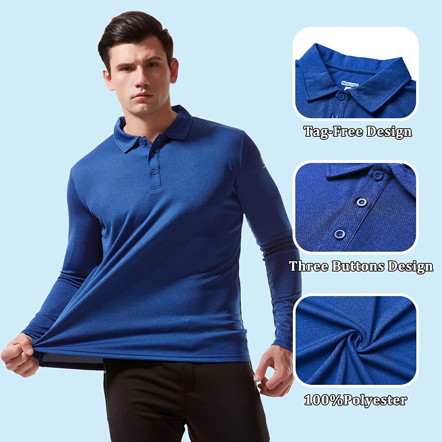 【Breathable Fabric】: This mens golf shirts made of 100% Polyester. Lightweight and quick-dry, providing superior comfort all day long, on and off the golf course.