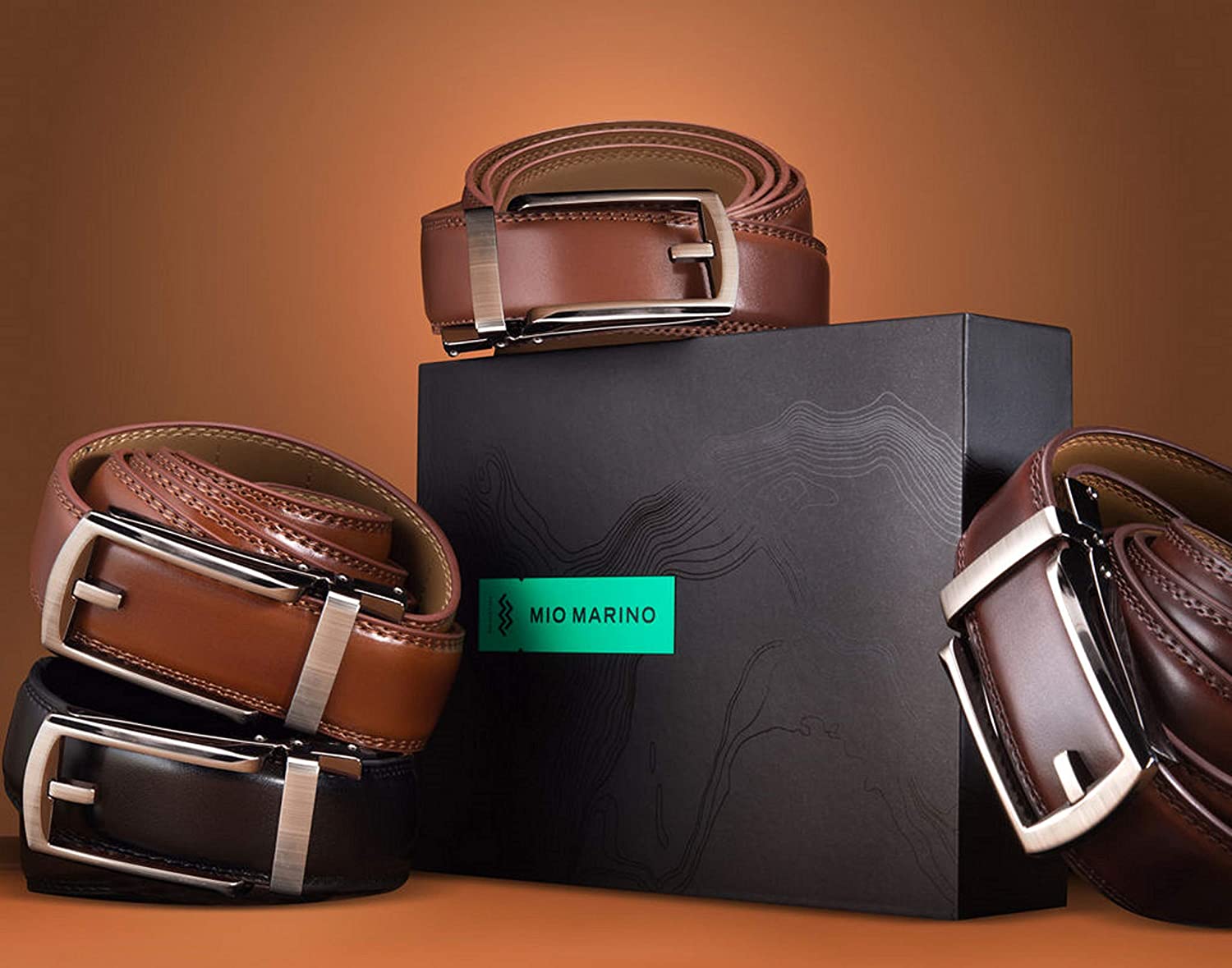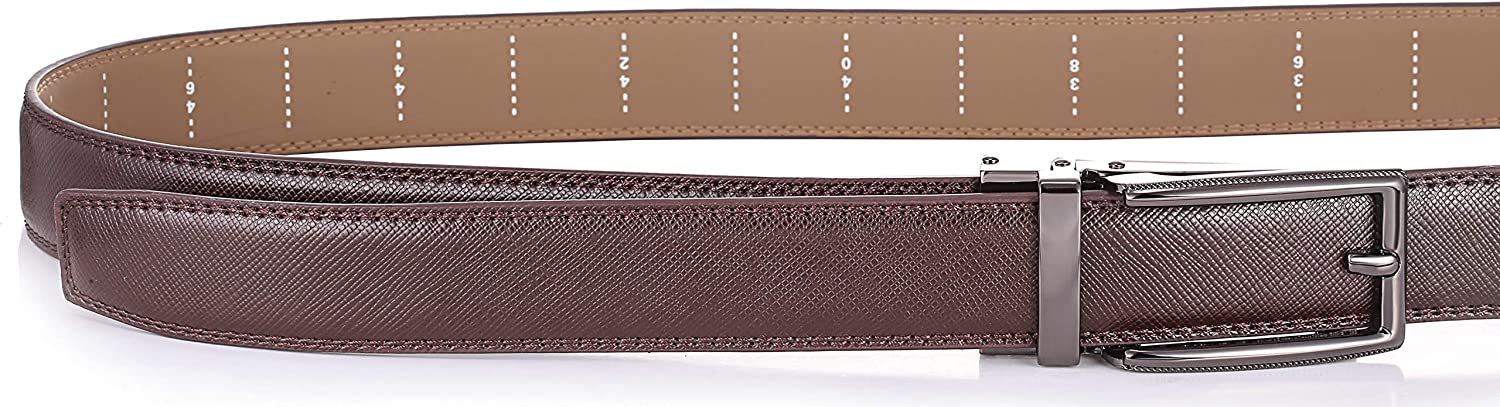 • NO MORE HOLES - Marino's Fashion Ratchet Belt provides 38 unique adjustments for a superb comfortable fit. Easy removable buckle allows you to cut the belt to your ideal size to give a primmer and custom tailored appearance!