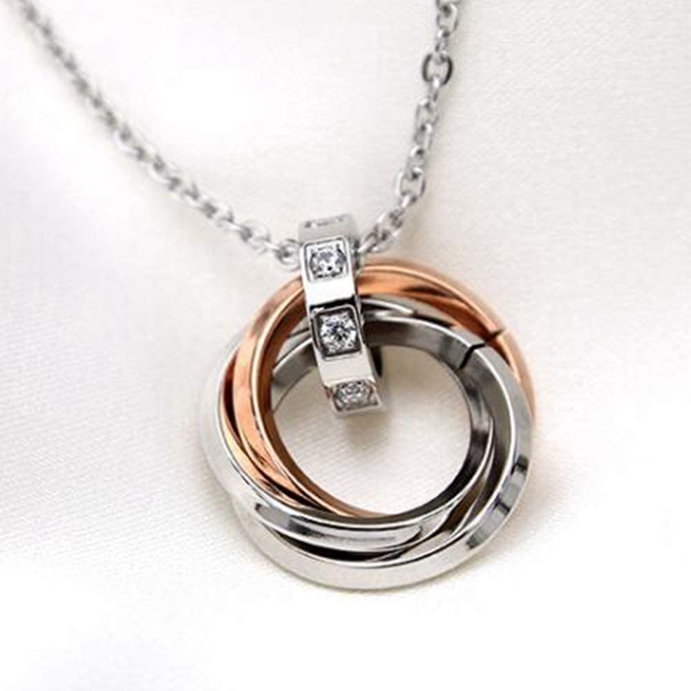 Jude Jewelers Stainless Steel Three Interlocking Braided Circles Pendant Necklace