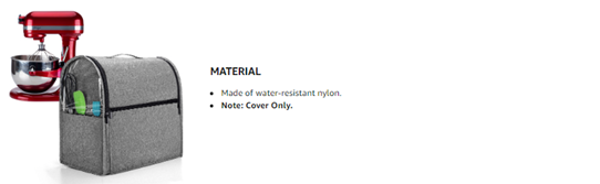 SUITABLE MODELS: This cover is compatible with all 6-8 quart Stand mixer.