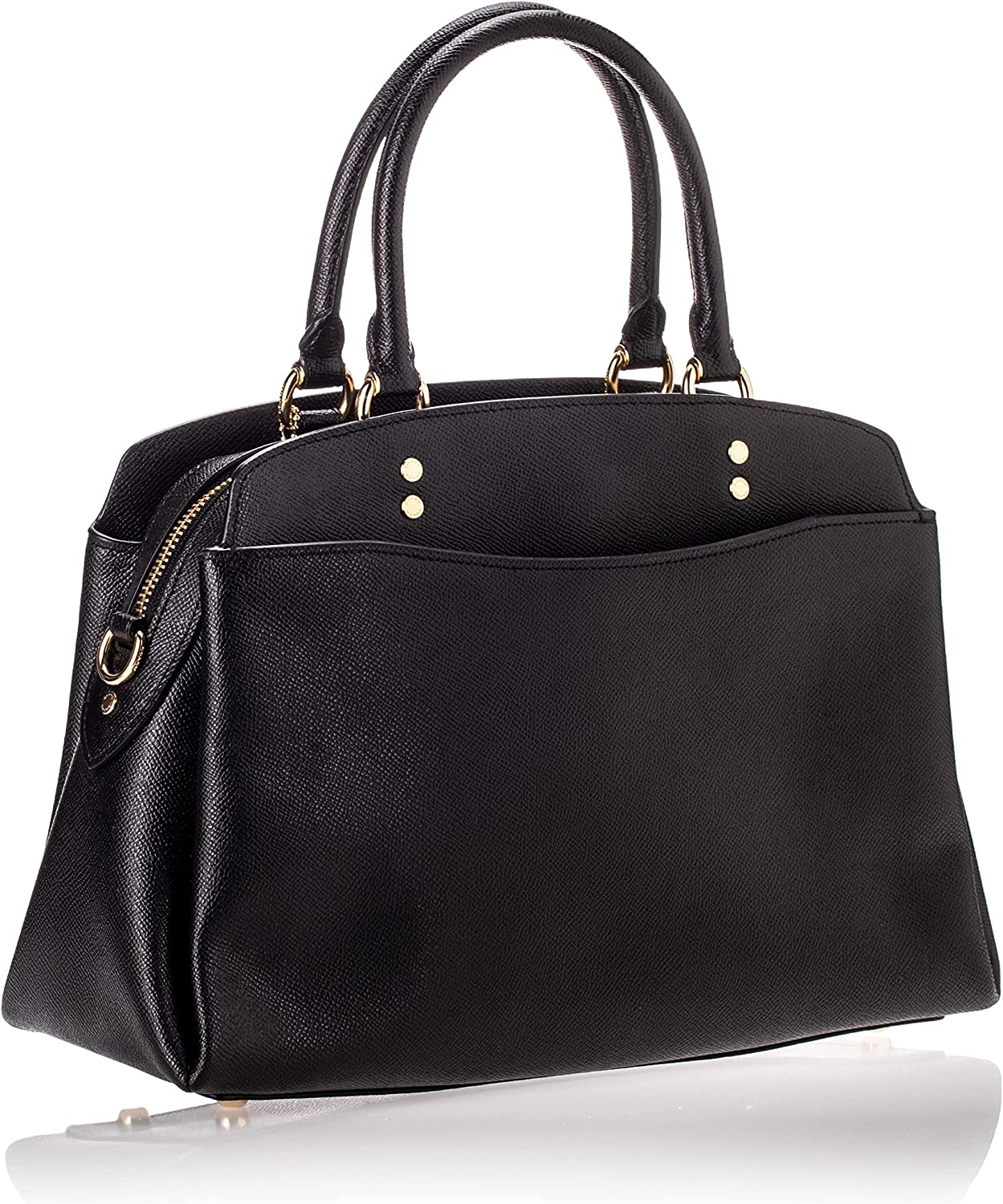 The crossgrain leather Lillie carryall is a structured everyday bag featuring top handles and a detachable strap for versatility. Crossgrain leather. Inside zip and multifunction pockets. Center zip compartment. Snap closure, fabric lining. Handles with 4 3/4" drop. Outside open pocket. Detachable strap with 20" drop for shoulder or crossbody wear. 12 3/4" (L) x 8 3/4" (H) x 5 1/4" (W)