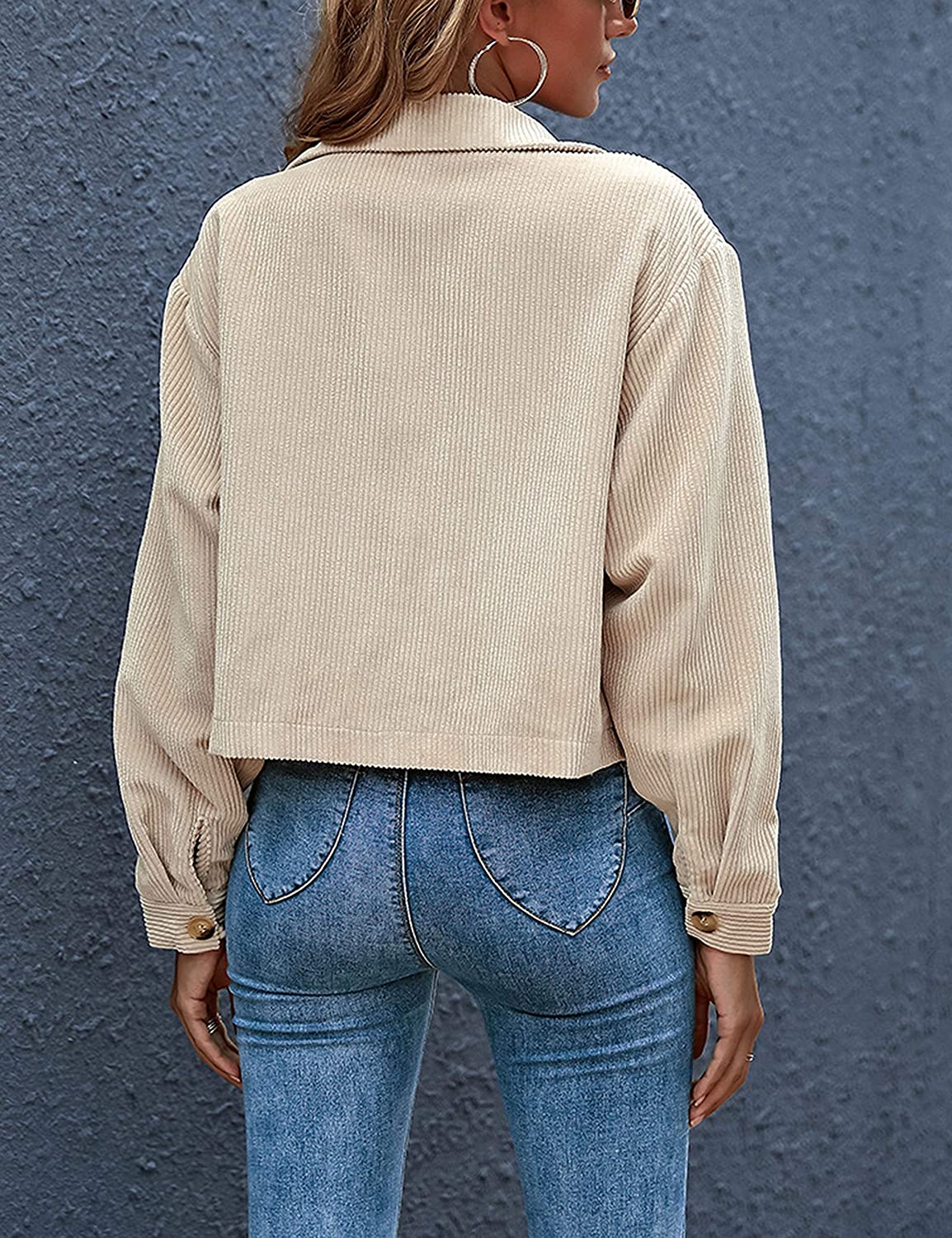 Gihuo Women's Fashion Cropped Shacket Button Down Corduroy Shacket Jackets