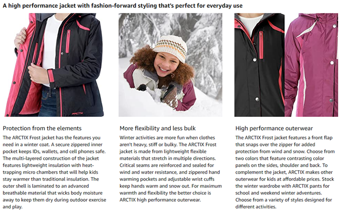 All the warmth they crave and zero bulkiness makes this a hands-down kid favorite—the super-stylish, color design is also a winner as they streak down the slopes. The name says it all: Frosty temps, ice, snow and bitter wind are no match for this high-performance parka built with smart layers of streamlined insulation so they get all the warmth and maximum movement Tech Specs: * 100% polyester dobby ThermaLock™ shell with a 210T polyester taffeta lining for added strength * 85 GRAMS OF lightweight ThermaTech™ insulation, which provides protection against temperatures ranging from -20° to +35° * Heavy-duty zipper closure * Fully padded hood * Adjustable cuffs to protect wrists and hands * Protective wind flap snaps over the front zipper to guard against gusts * Multiple roomy zippered pockets * Reinforced, sealed seams provide extra protection against wind and rain * Water and wind resistant * Machine washable. Millions of warm + dry customers — for 20 years Arctix has been protecting millions from the cold and the wet, the snow and the wind. On the slopes, in the backyard, and at their jobs. Known for, tested by, and loved by millions with 50,000 five-star reviews and counting.