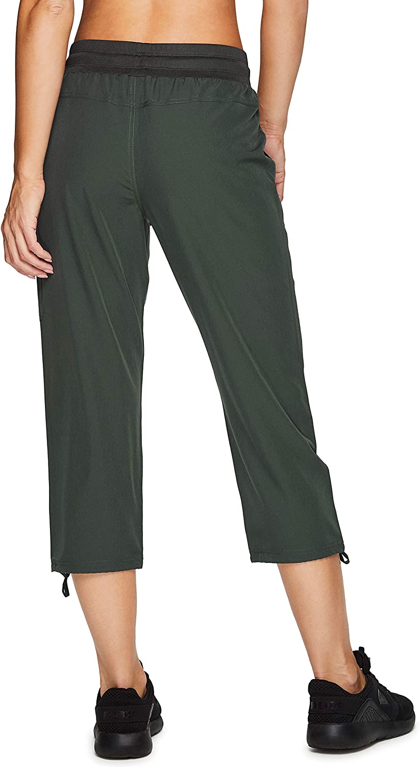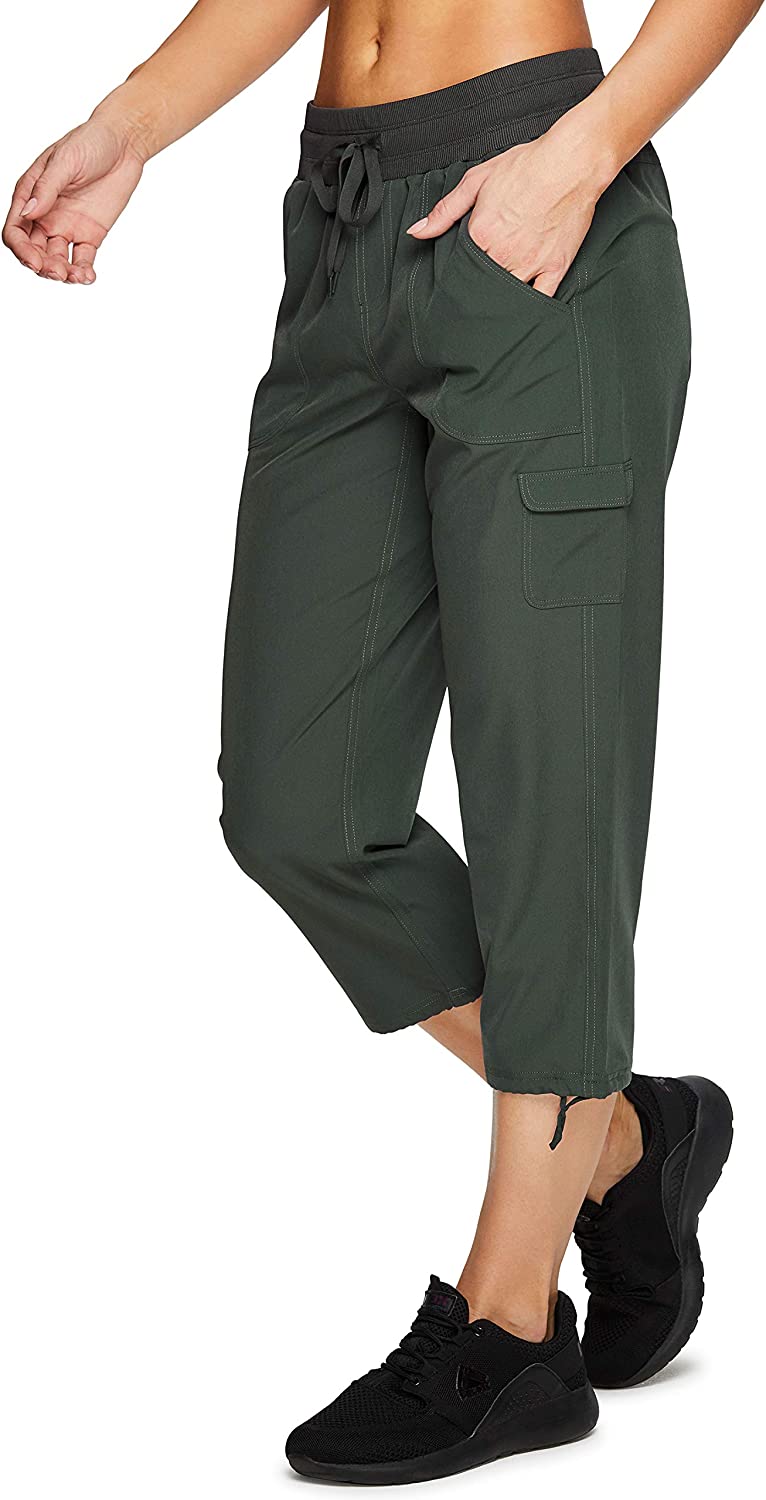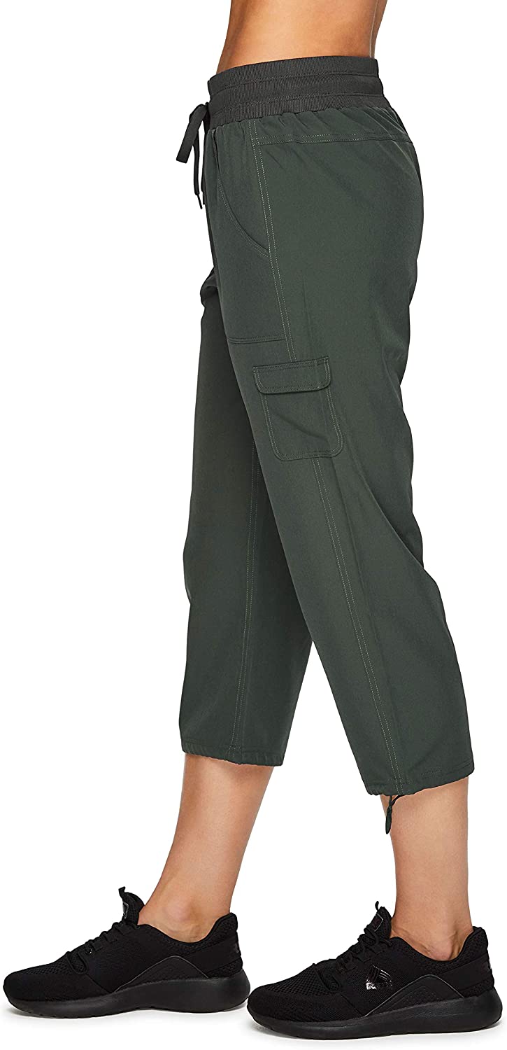 RBX Active Women's Fashion Lightweight Woven Drawstring Cargo Capri Pant with Pockets