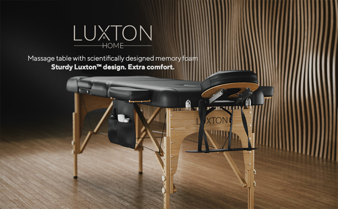 Luxton Home 3-Section Premium Memory Foam Massage Table with Rolling Carrying Travel Case - Easy Set Up - Foldable & Portable - Adjustable Height, Head Cradle, Hanging Arm Rest, & Side Storage Pocket
