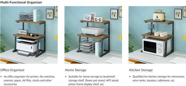 - 【MULTI-FUNCTION】Our shelf can be used in different situations. In addition to being used as a printer stand, it can also be used as a laptop shelf, bookshelf, storage shelf, flower pot tray, etc. In addition, you can use it for kitchen storage, such as placing microwave ovens, toasters and tableware.