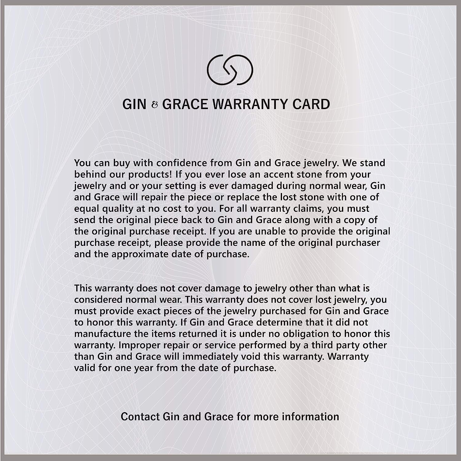 • EASY CLEAN: Gin & Grace jewelry are made up to last forever; however, be sure to take proper care of your jewelry. To clean this piece, use warm water, a mild soap, and a soft bristled brush if needed. Avoid contact with chlorine and other harsh chemicals to keep it forever shining.