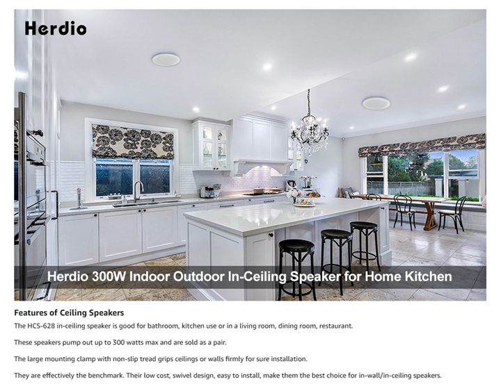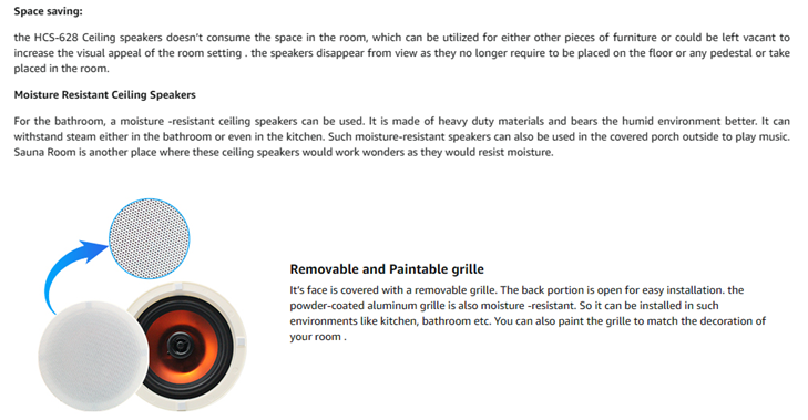• Easy to install:Listen to your favorite music in any indoor or enclosed space including a bathroom, kitchen,office,shop,classroom or a covered porch with the speaker's MOISTURE-RESISTANT DESIGN