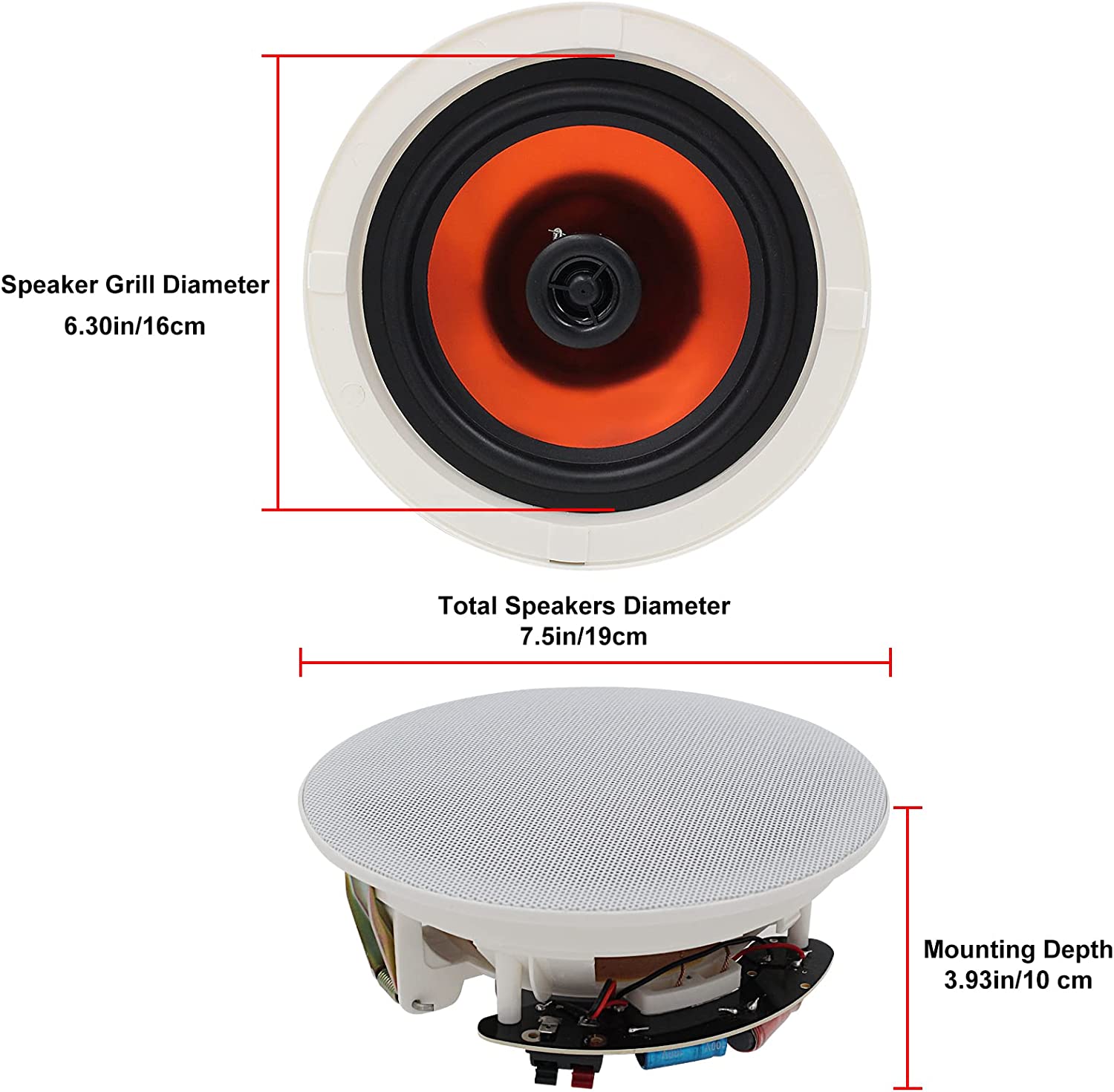 • Mounts on Ceilings: Total Speakers Diameter 6.4 Inches (16.2 CM),Cut Out Diameter 7.5 Inch(19CM), Speakers Depth: 3.93 Inches(10 CM),Mounting Depth:3.93 Inches(10 CM)