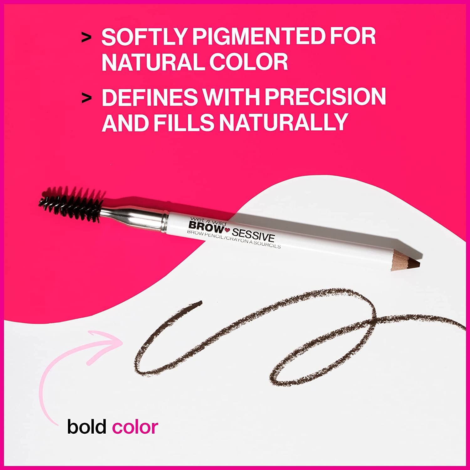 Eyebrow Pencil By Wet n Wild Brow-Sessive Brow Makeup Pencil Liner Blending Brush, Precise, Fine Tip, Shapes, Defines, Fills, Dark Brown