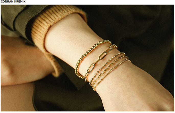 CONRAN KREMIX Gold Chain Bracelet Sets for Women Girls 14K Gold Plated Dainty Link Paperclip Bracelets Stake Adjustable Layered Metal Link Bracelet Set Fashion Jewelry