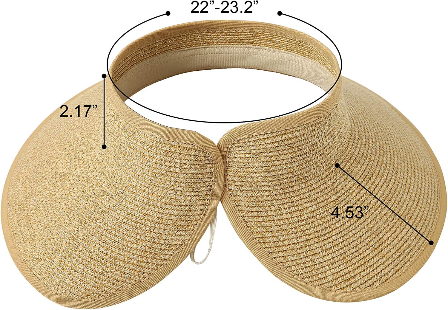 Lanzom Women Packable Hat Sun Visor Hats Wide Brim Straw Roll Up Ponytail Summer Beach Hat UPF 50
