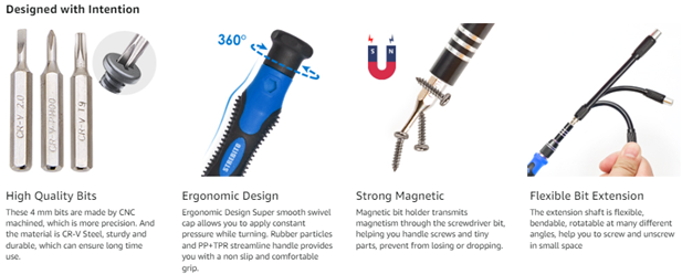 - 【Humanized Design】This electronic screwdriver set has been professionally designed to maximize your repair capabilities. The screwdriver features a particle grip and rubberized, ergonomic handle with swivel top, provides a comfort grip and smoothly spinning. Magnetic bit holder transmits magnetism through the screwdriver bit, helping you handle tiny screws. And flexible extension shaft is useful for removing screw in tight spots