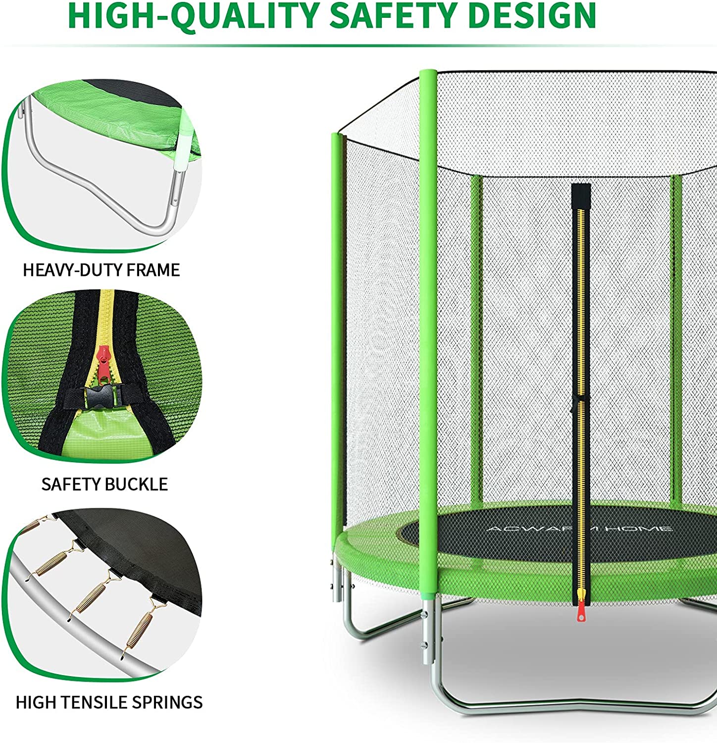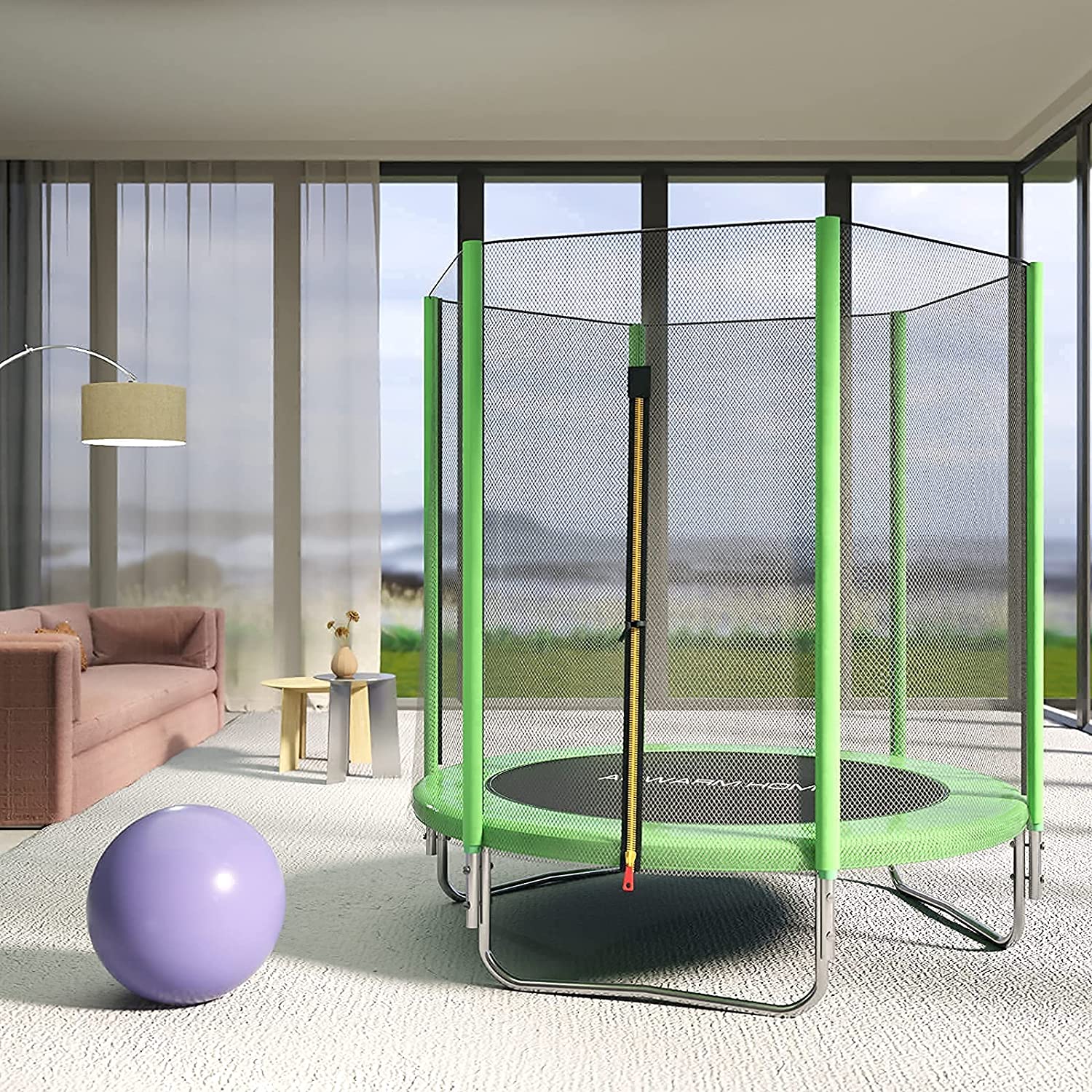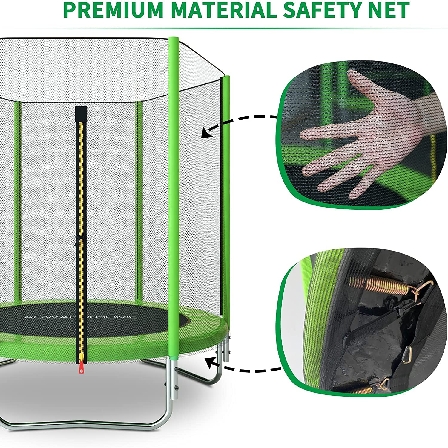 ACWARM HOME 6FT Mini Trampoline for Kids, Toddler Trampoline Indoor with Safety Net, Small Round Trampolines-Green