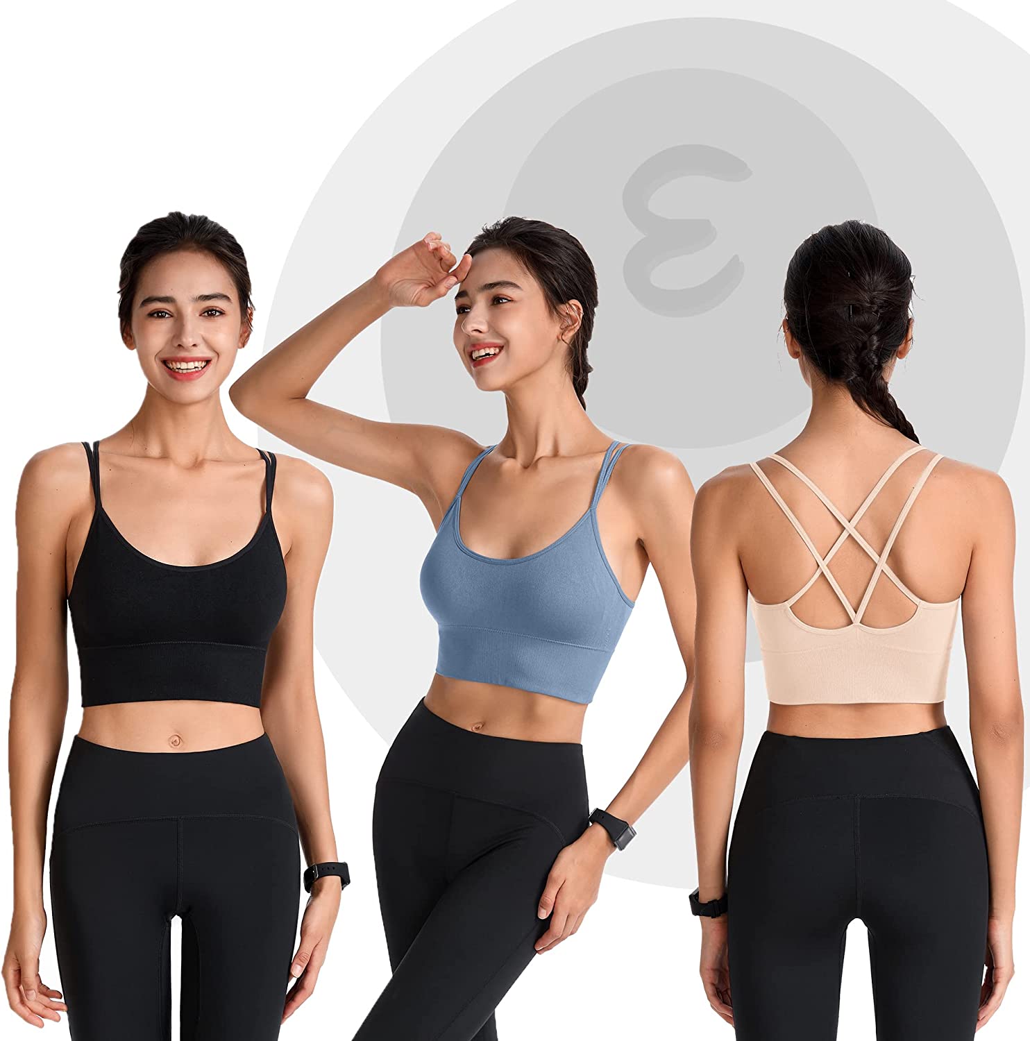 Evercute Cross Back Sport Bras Padded Strappy Criss Cross Cropped Bras for Yoga Workout Fitness Low Impact