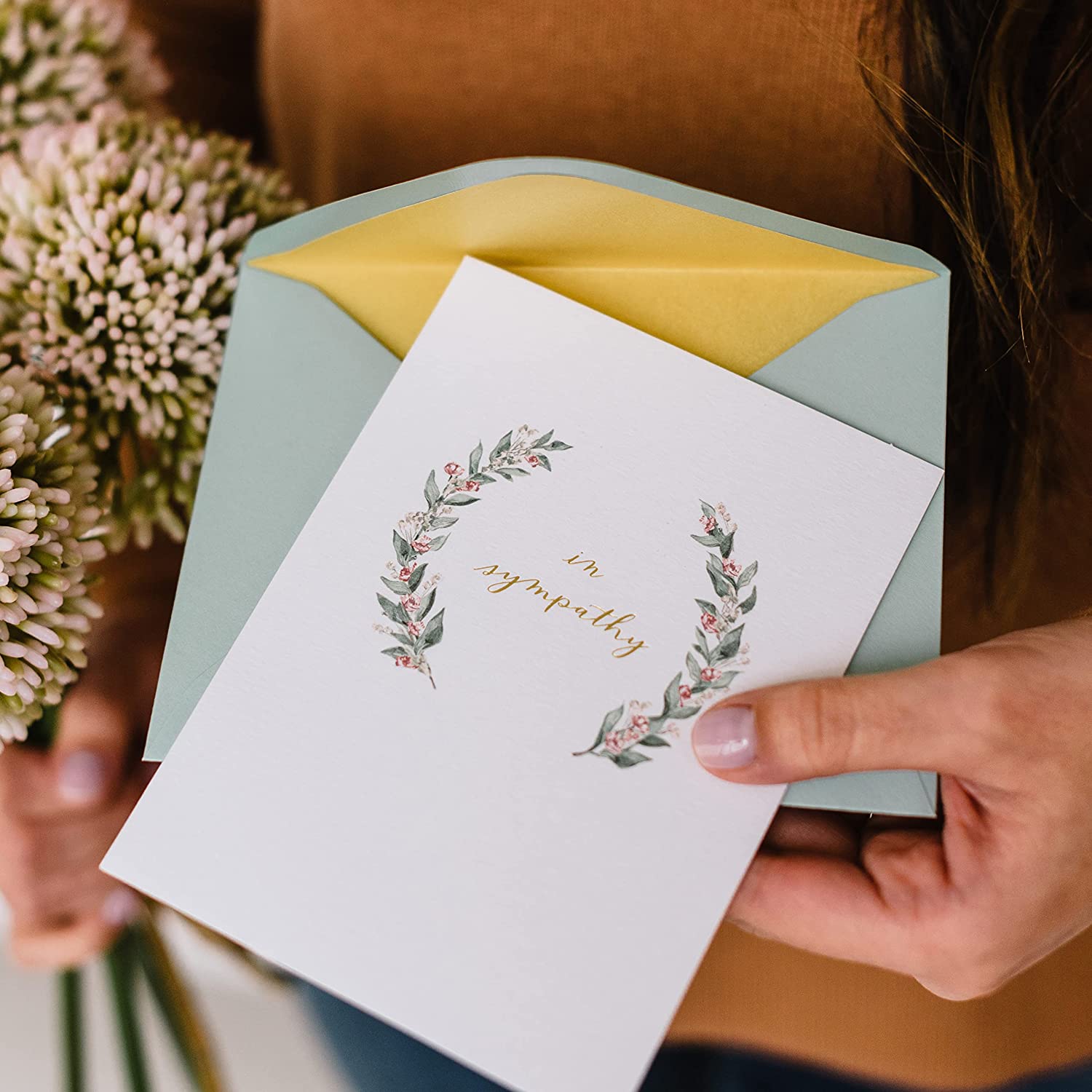 • CARD 2 FRONT: In sympathy CARD 2 INSIDE: Thinking of you with wishes of peace and comfort