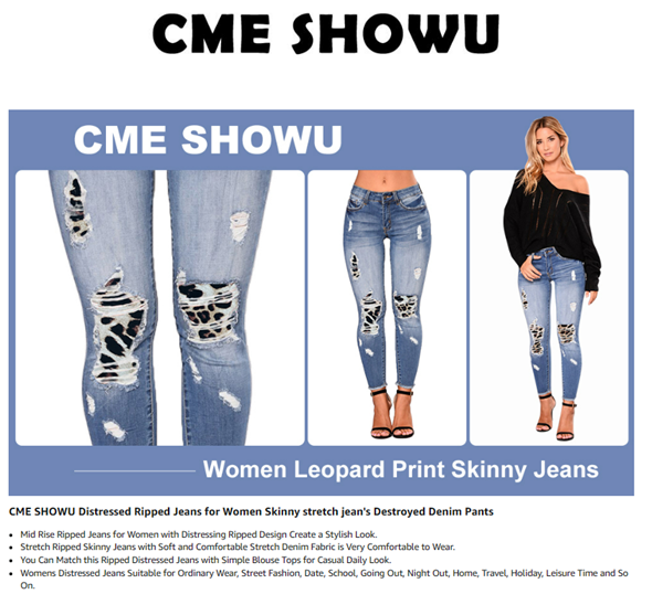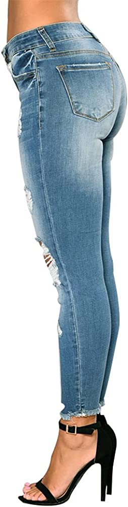 CME SHOWU Women Skinny Ripped Jeans Stretch Distressed Destroyed Denim Pants