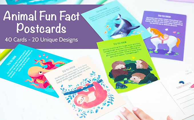 • 40 POSTCARDS, 2 OF EACH DESIGN - Our bulk 40 postcards set features 20 cute animal designs and amazing fun facts. It will be hard to decide which postcard to send out, because you’ll want to share them all!